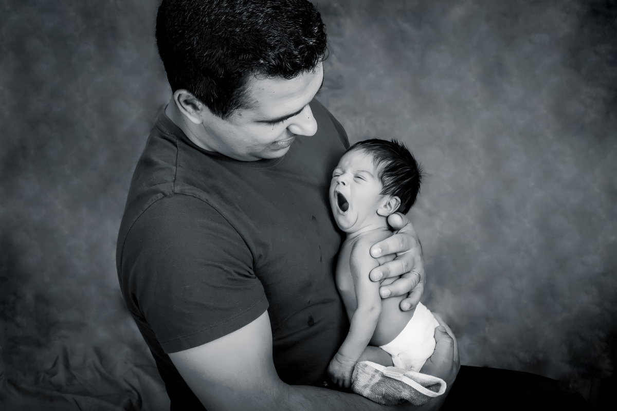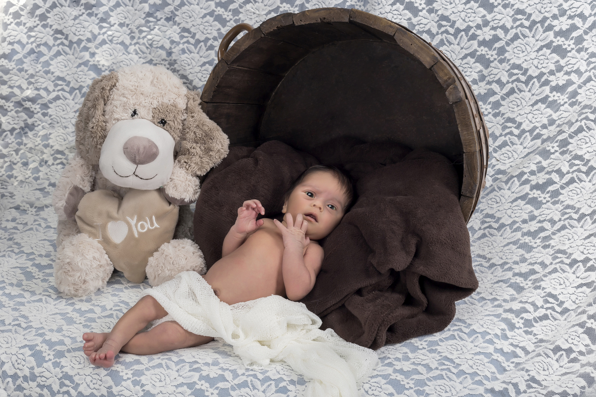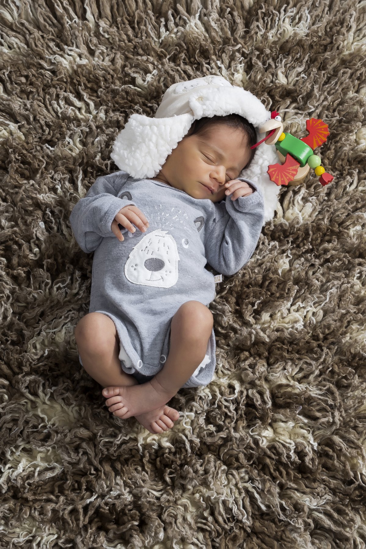 Nicolas de 10 dias, menino amoroso e sorridente, na sessão fotográfica de recém-nascido.