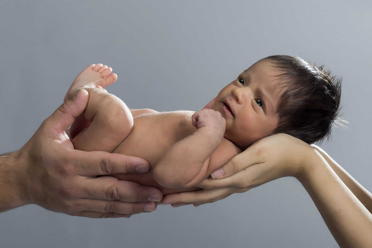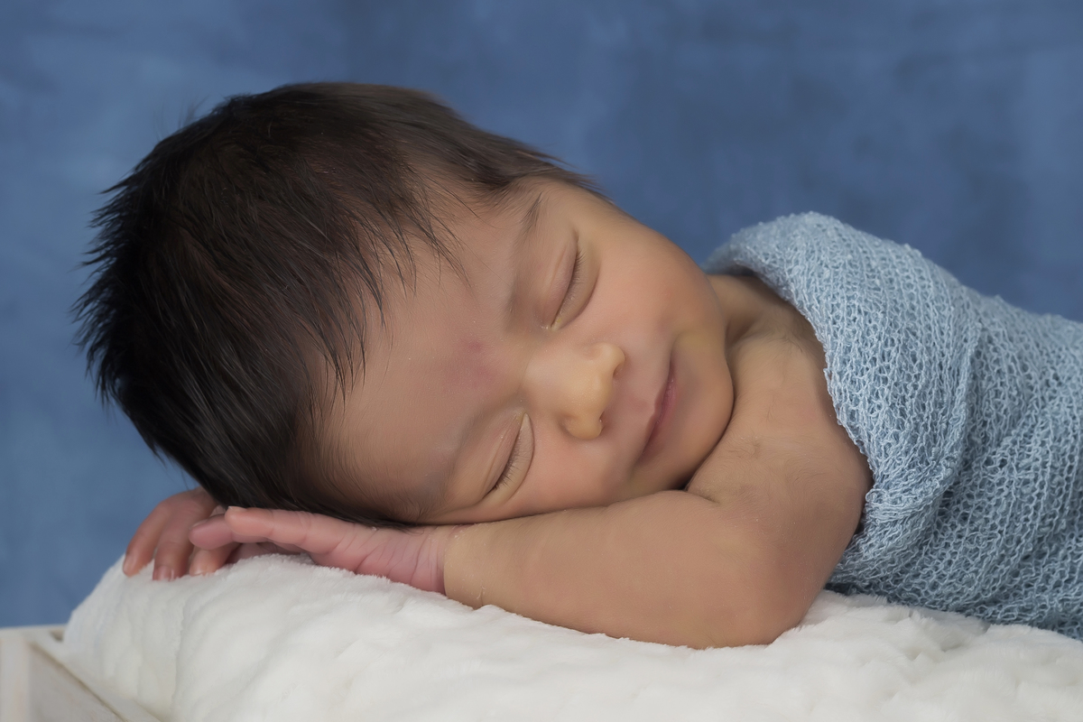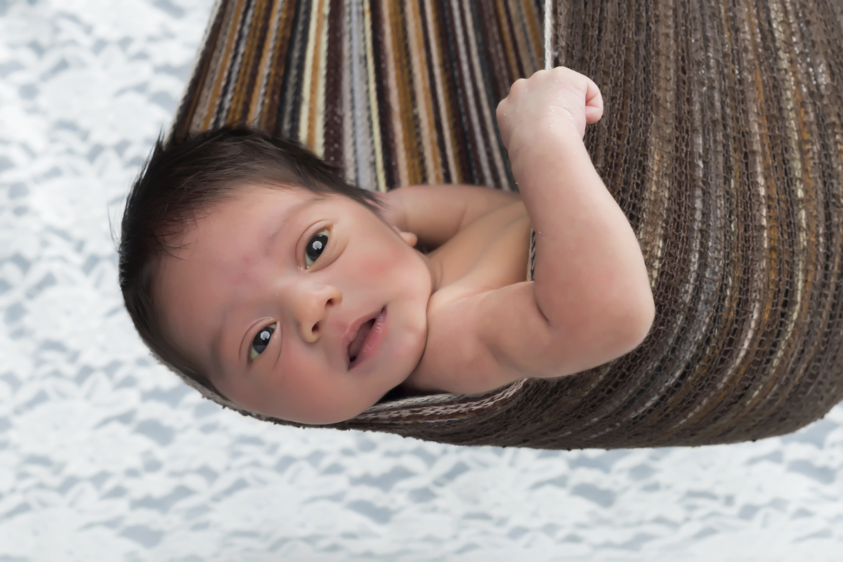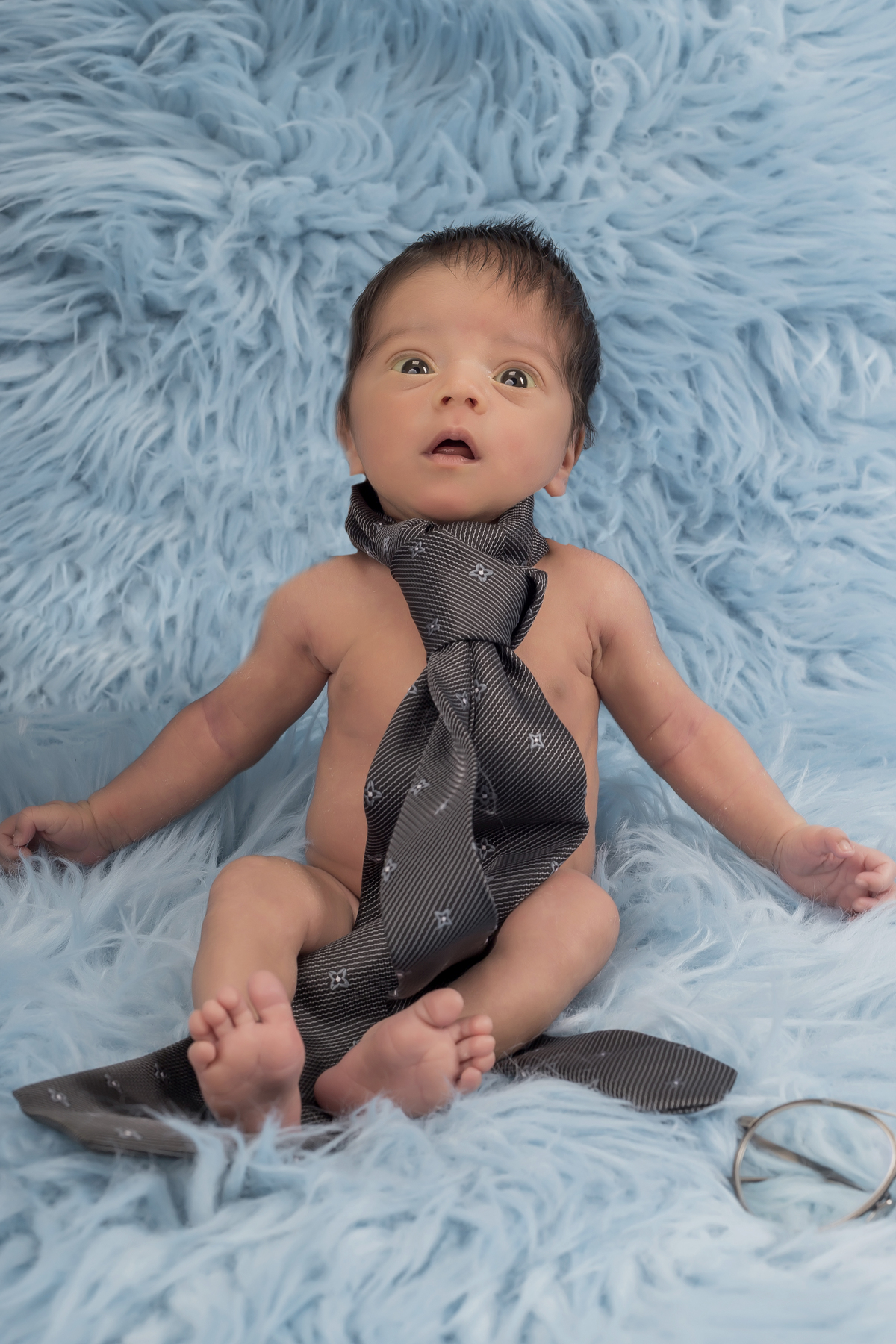Nicolas de 10 dias, menino amoroso e sorridente, na sessão fotográfica de recém-nascido.