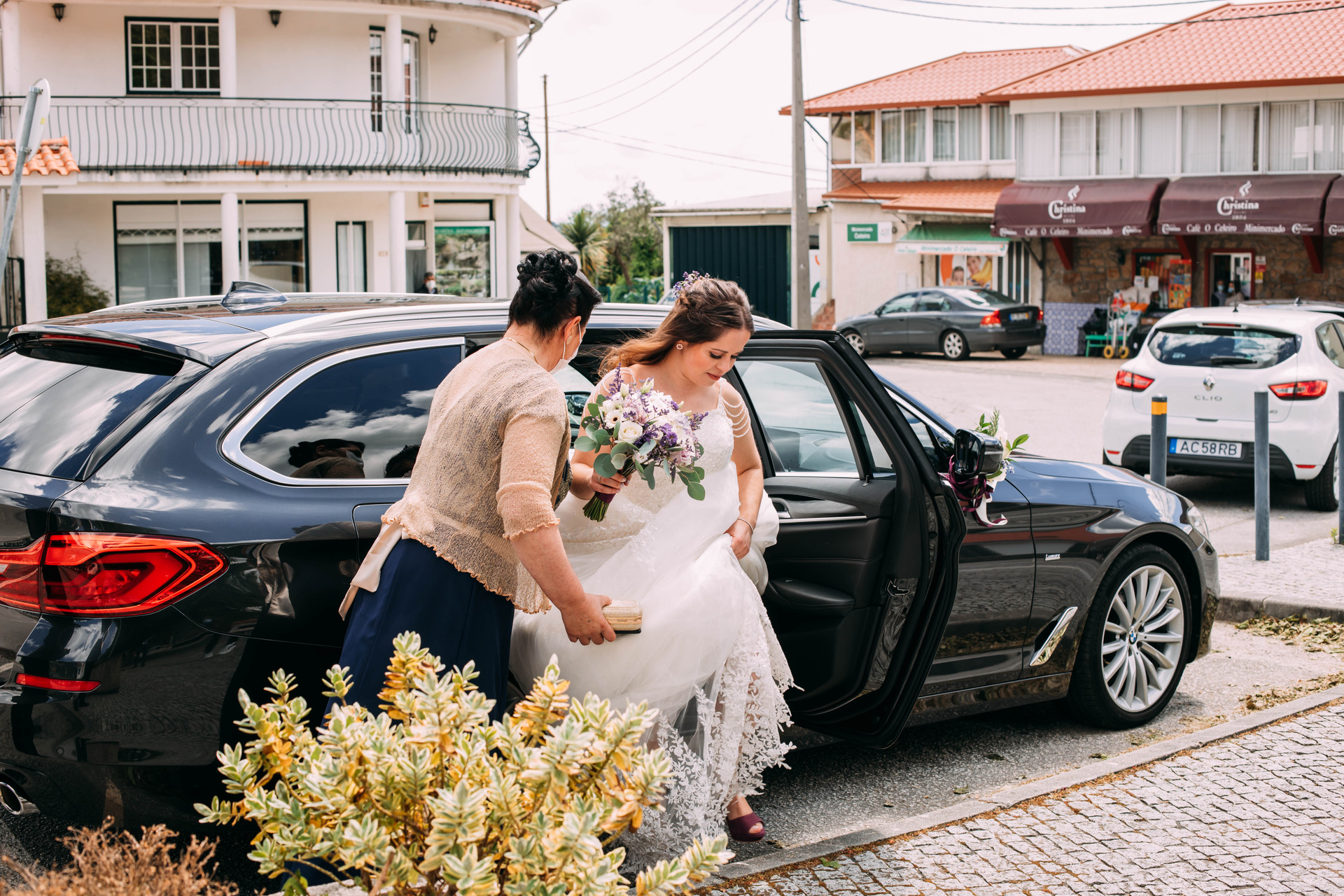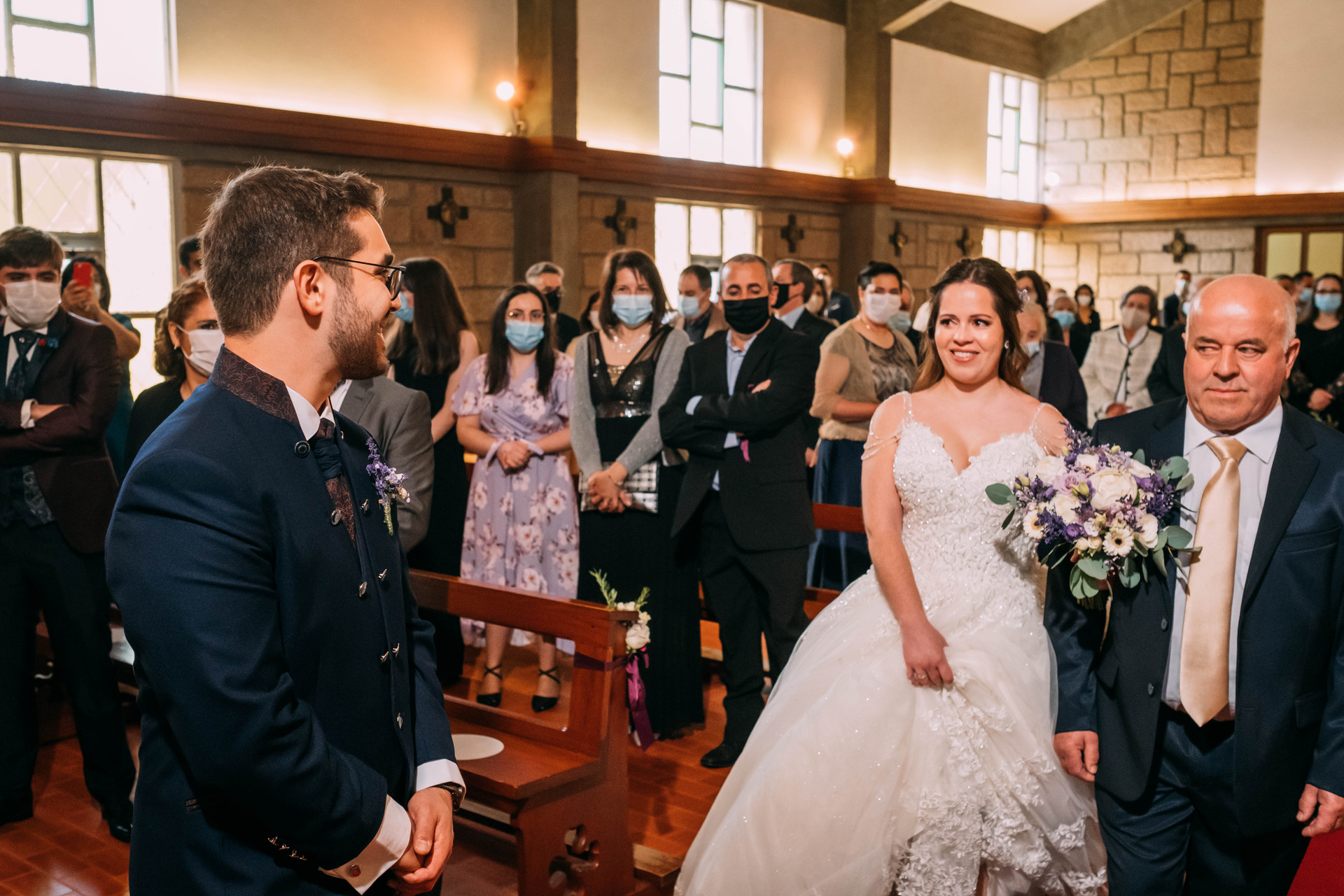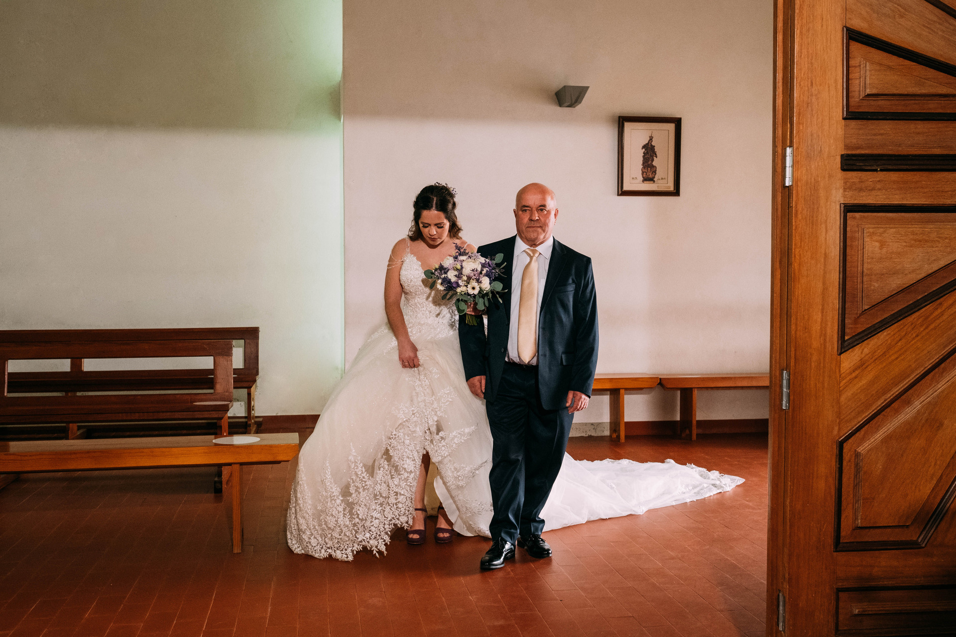A Noiva, menina mais querida dos seus pais que acompanham com orgulho e muito amor até ao altar.
