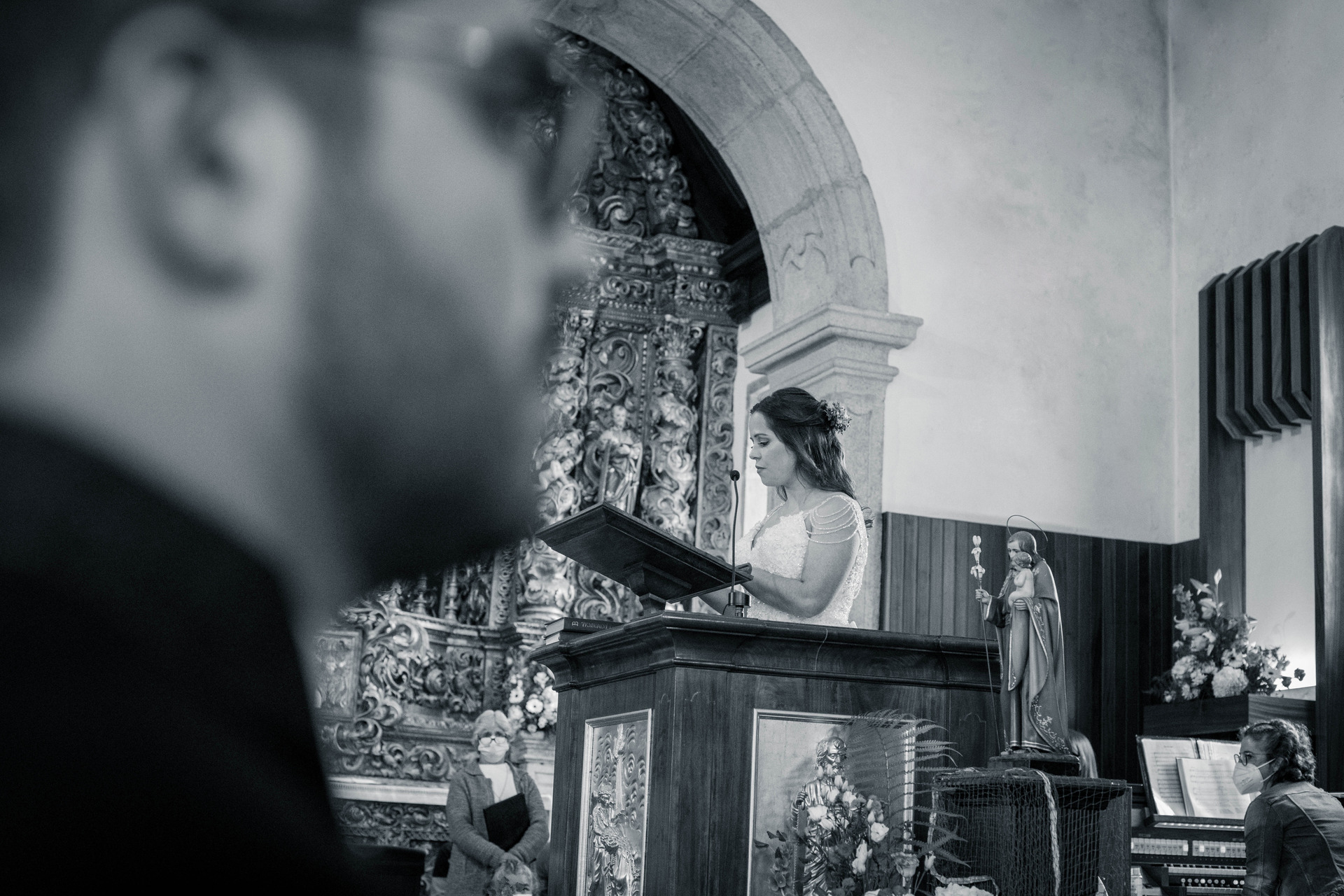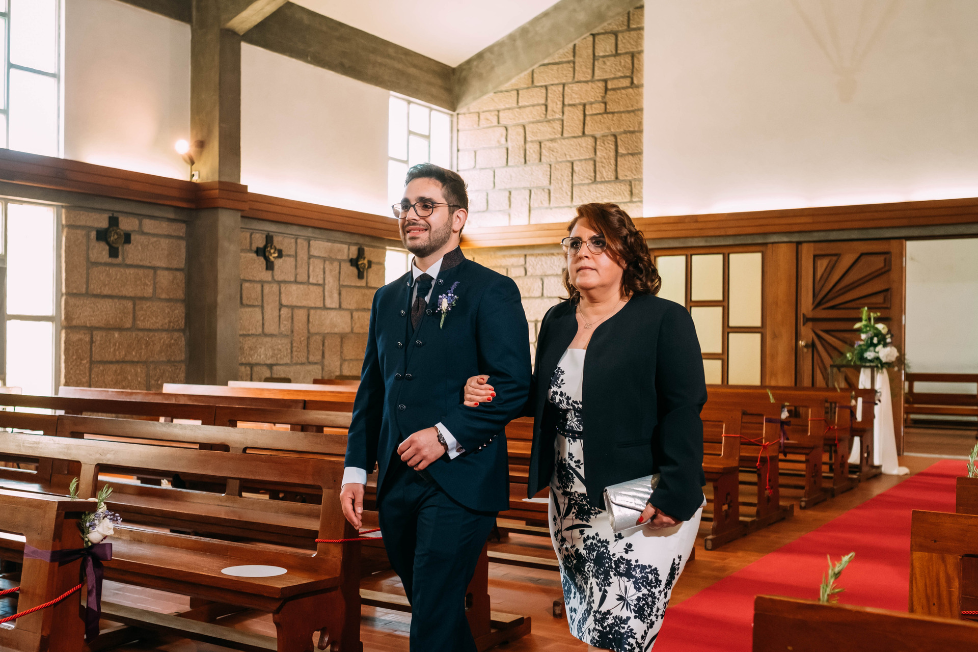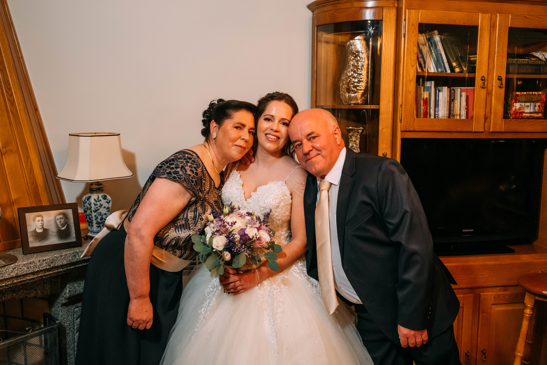 A Noiva, menina mais querida dos seus pais que acompanham com orgulho e muito amor até ao altar.
