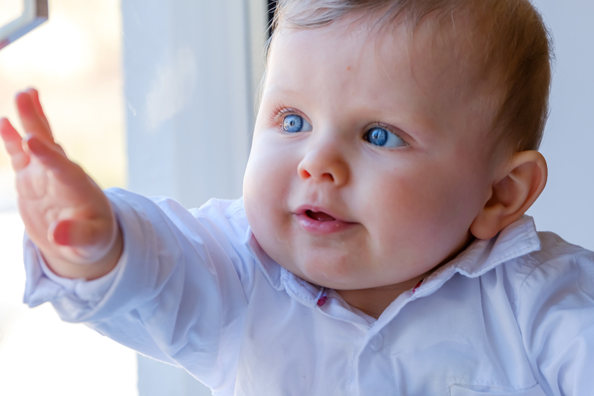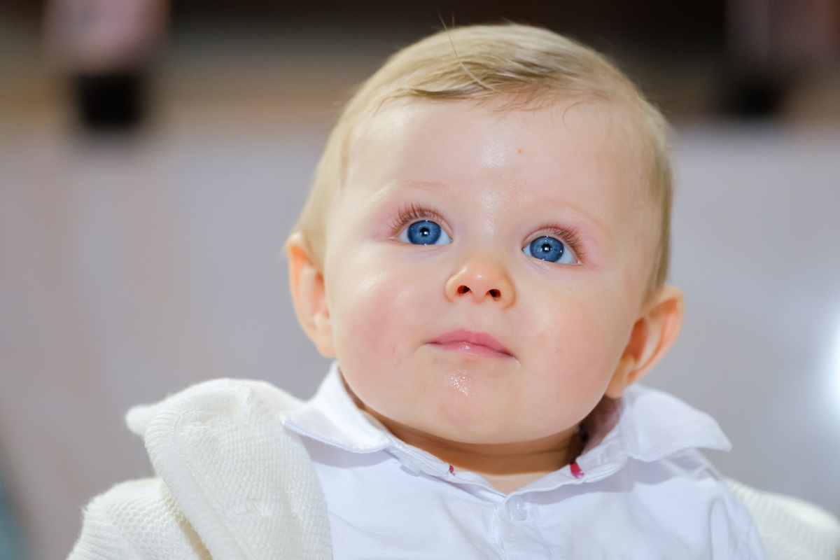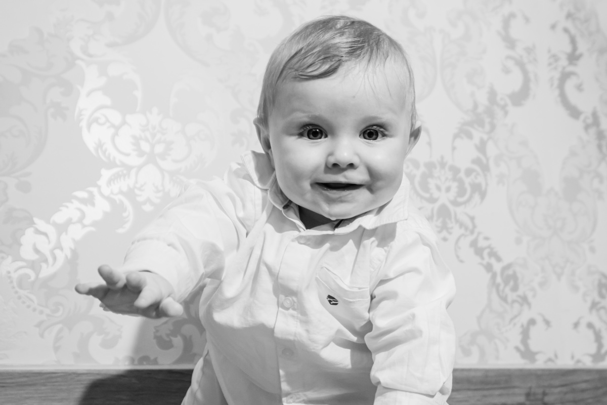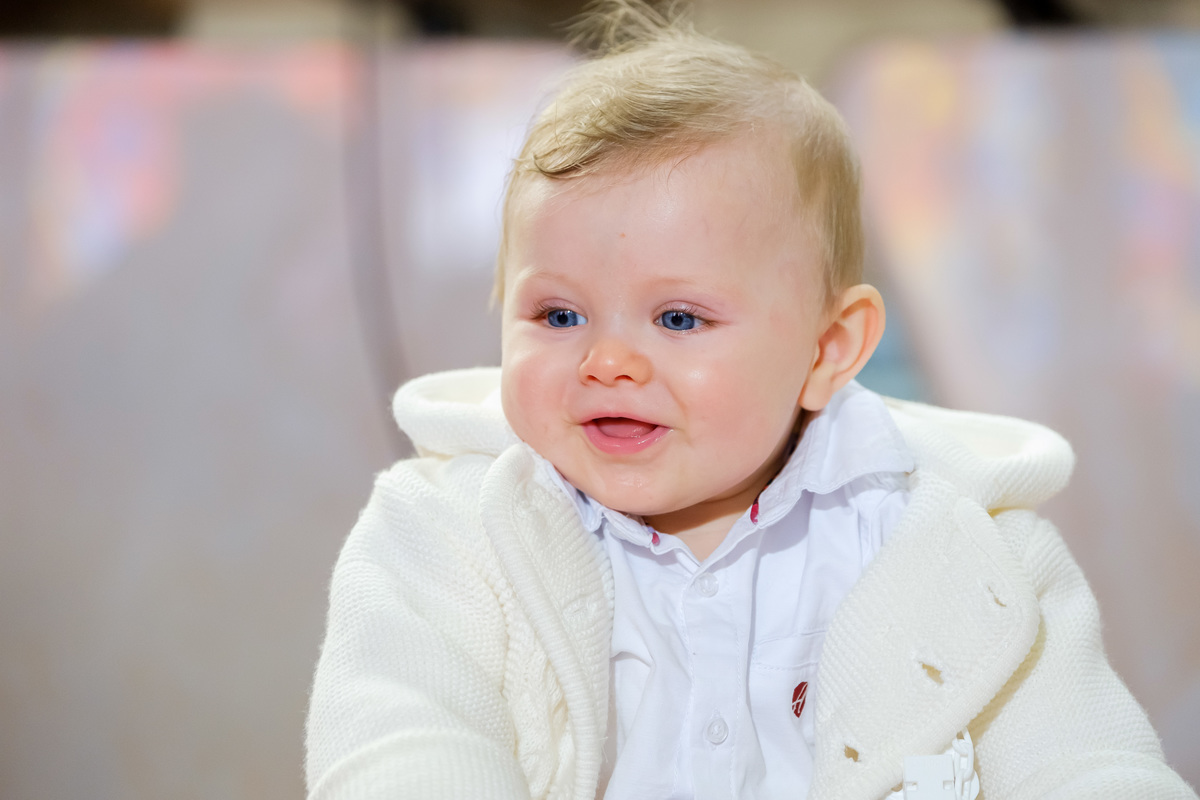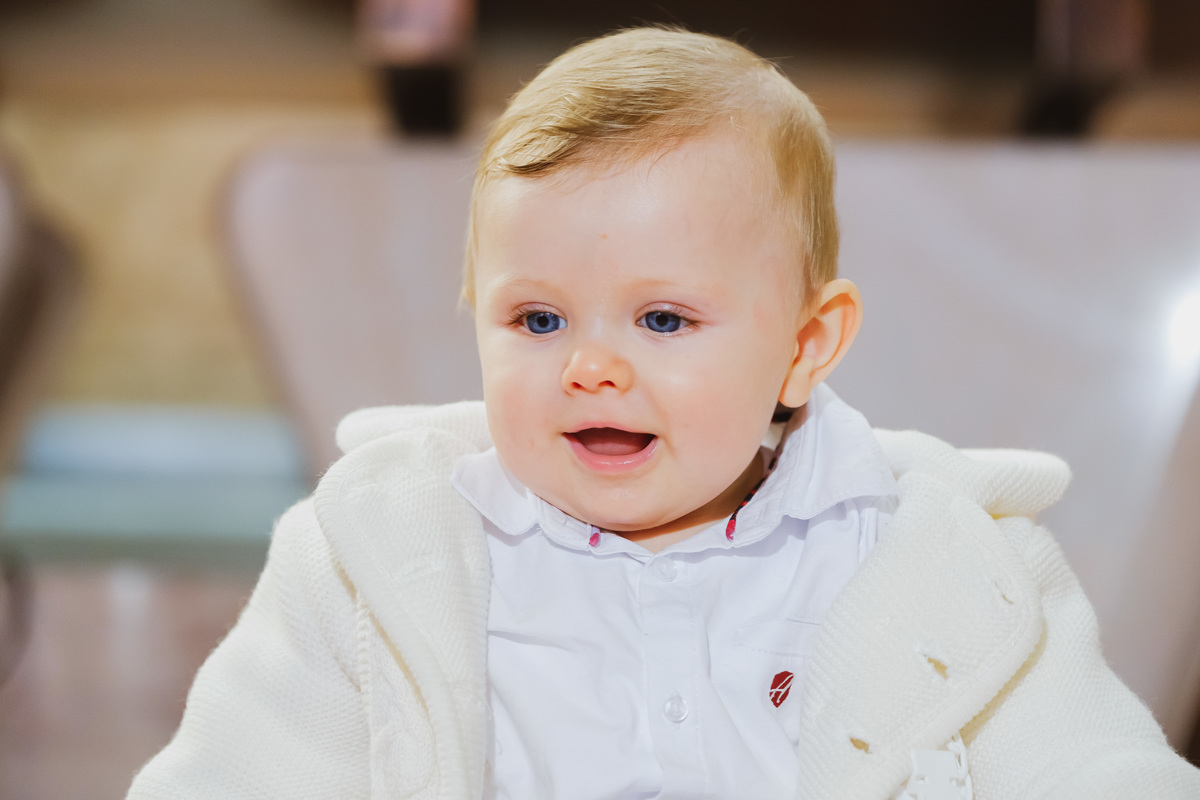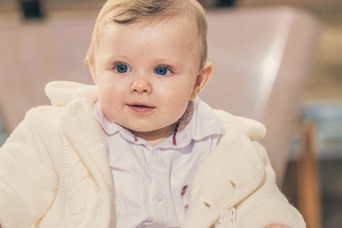 Sessão fotográfica do batismo de Nelson Daniel, um menino de olhos grandes azuis muito curiosos por ver o mundo ainda por explorar.