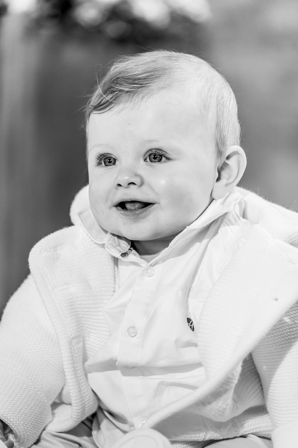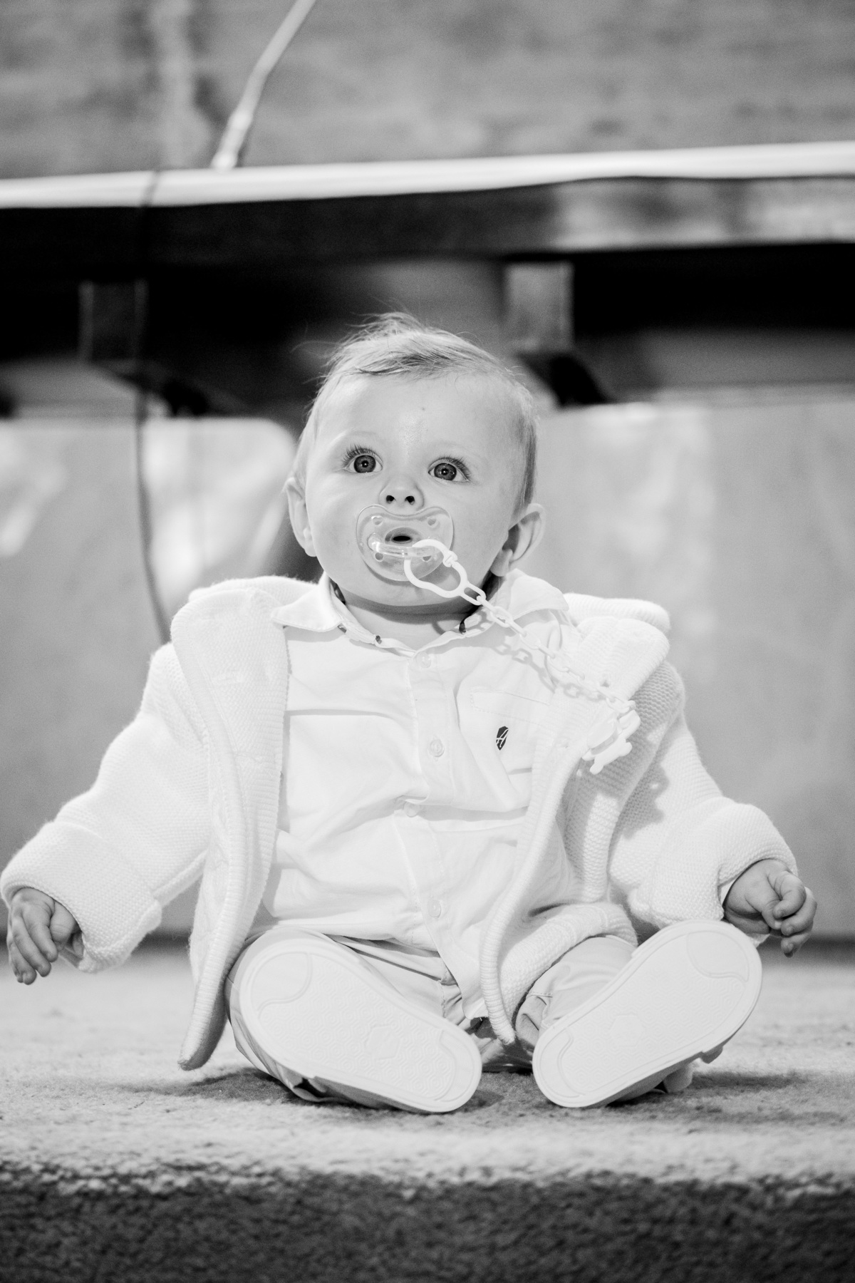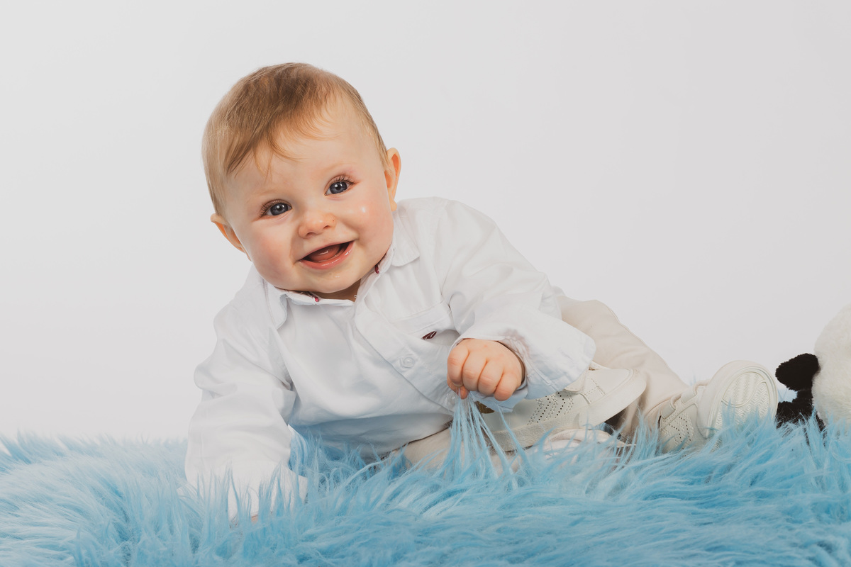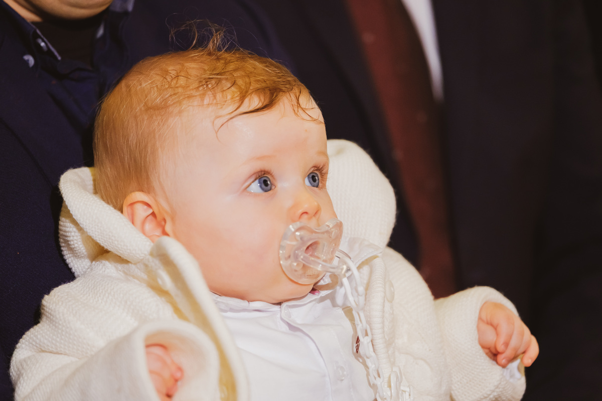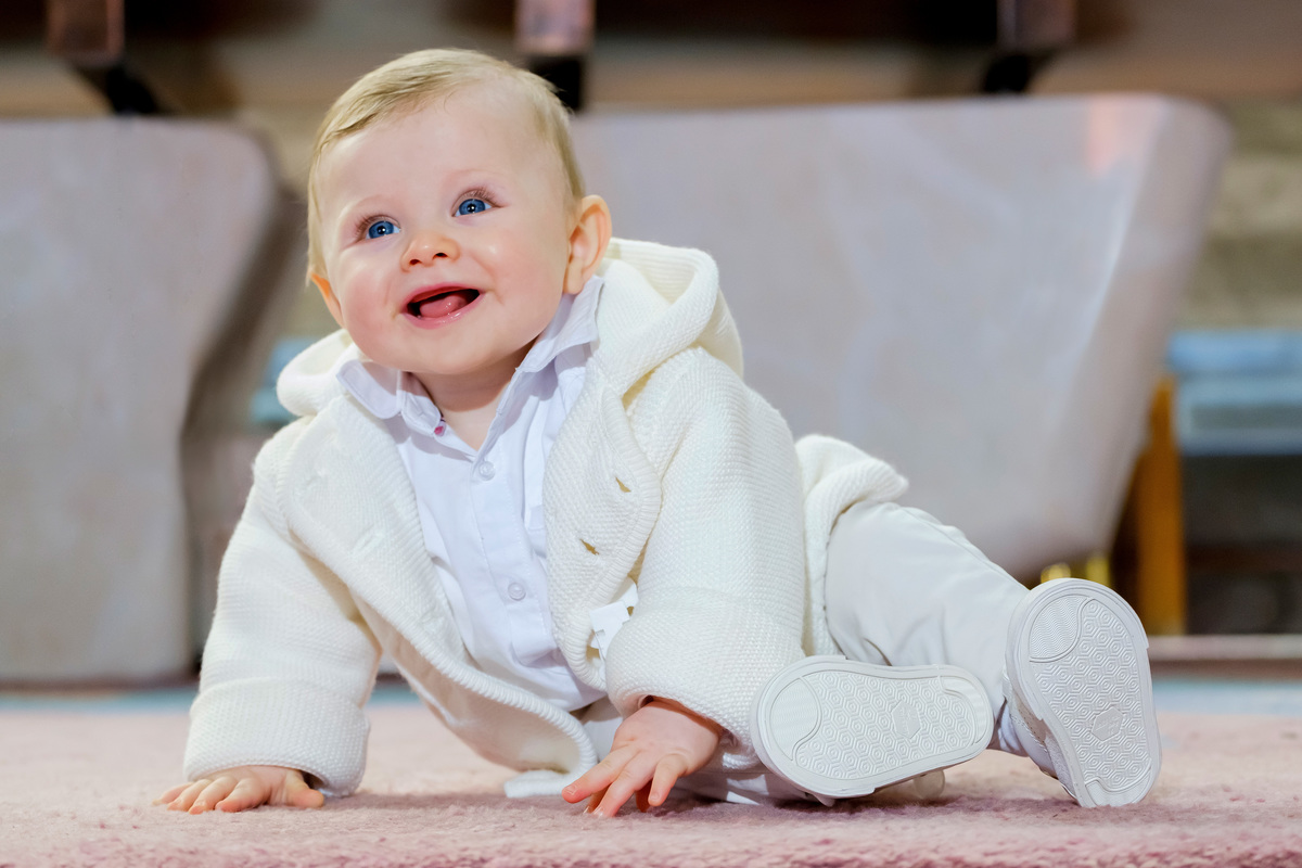 Sessão fotográfica do batismo de Nelson Daniel, um menino de olhos grandes azuis muito curiosos por ver o mundo ainda por explorar.