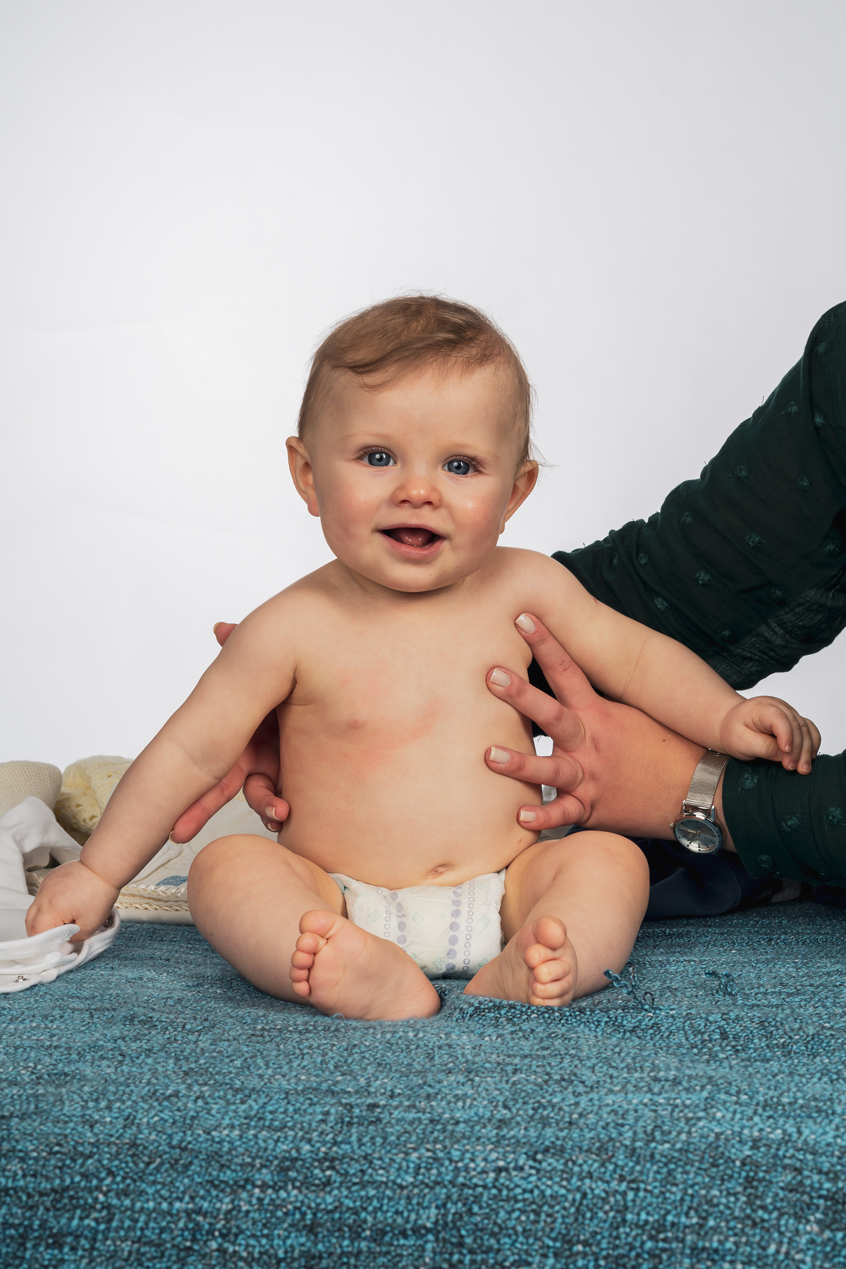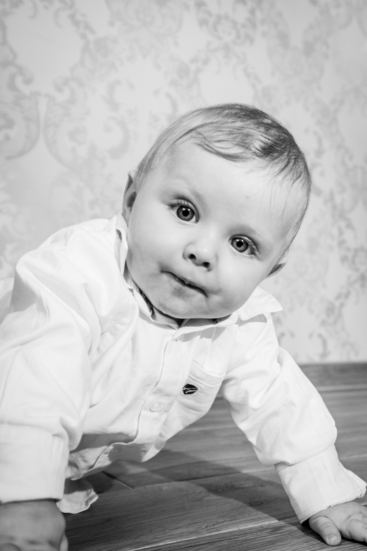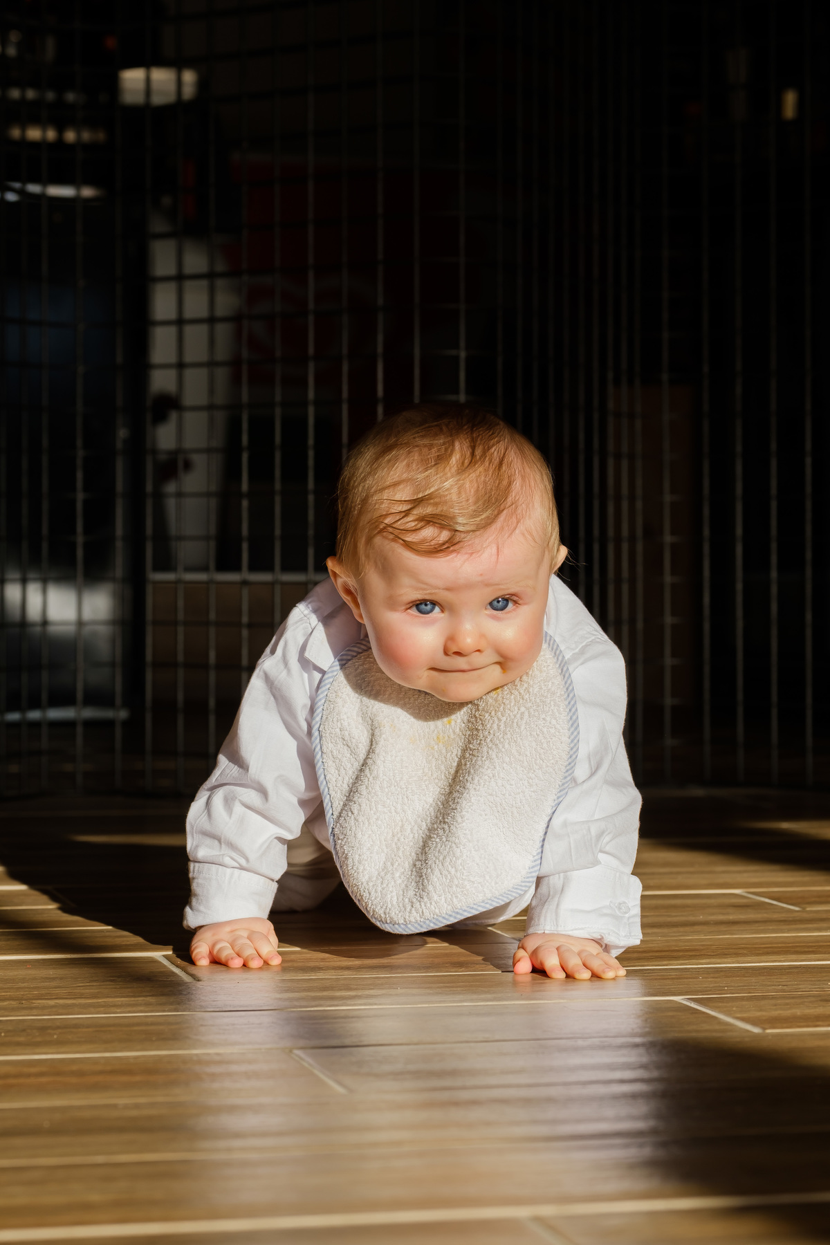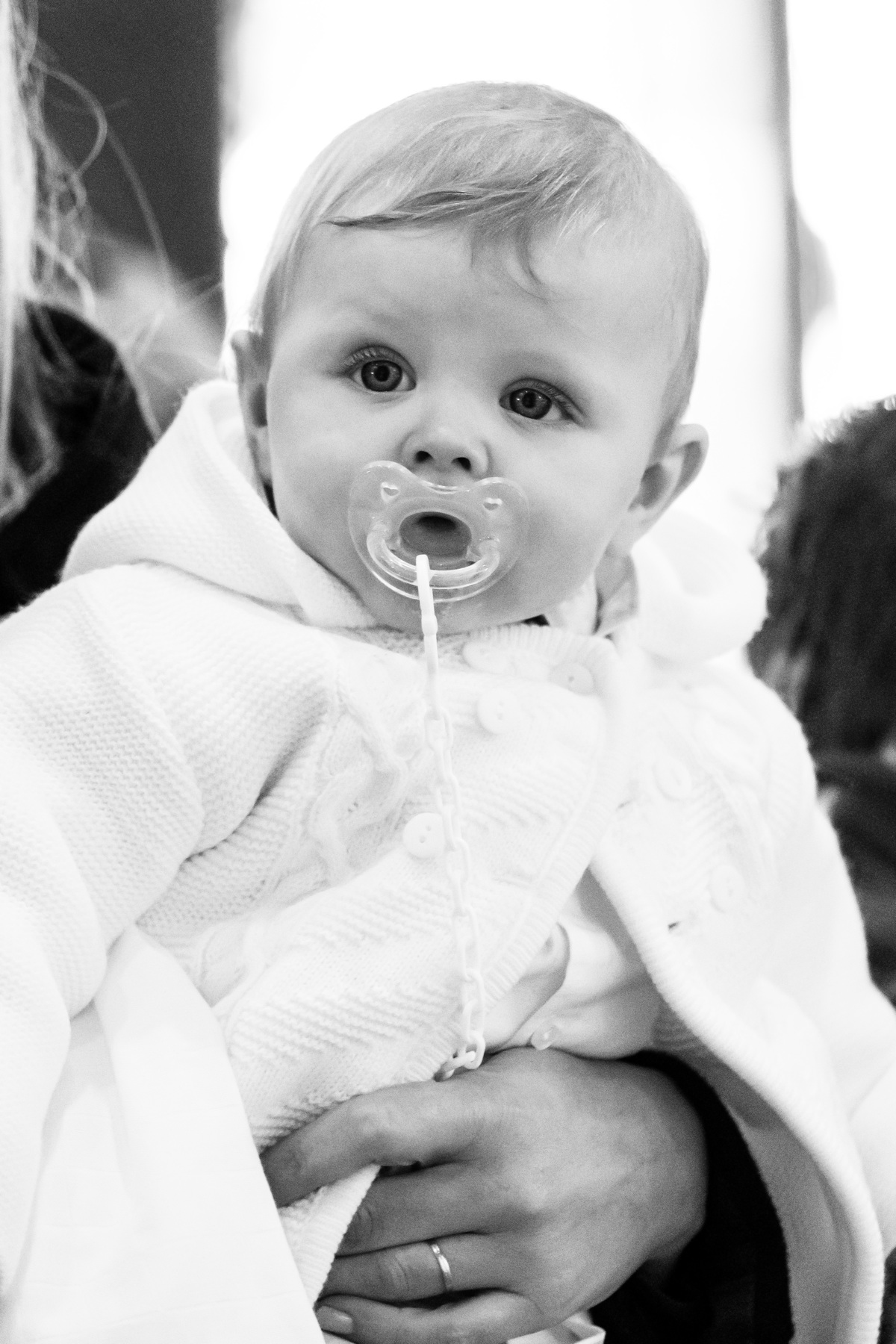 Sessão fotográfica do batismo de Nelson Daniel, um menino de olhos grandes azuis muito curiosos por ver o mundo ainda por explorar.