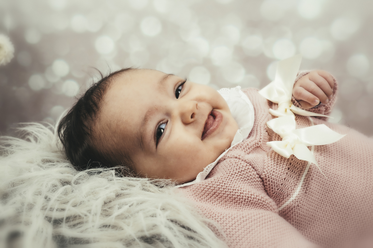 Sessão fotográfica de Natal desta linda bebé, Mafalda. Uma menina encantadora com olhar curioso para a vida.