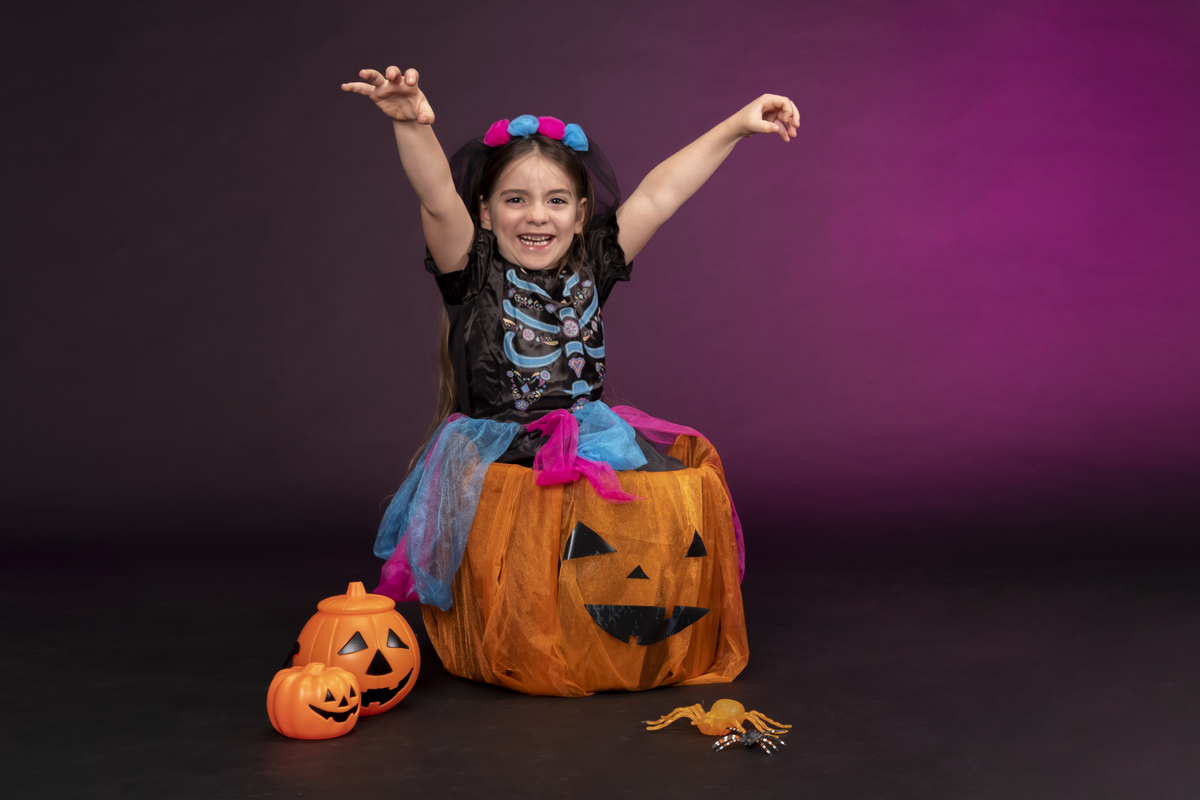 Menina linda Vitória preparada para o dia de halloween