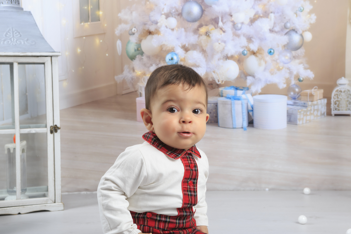 O lindo menino Tomás na sessão fotográfica de Natal.