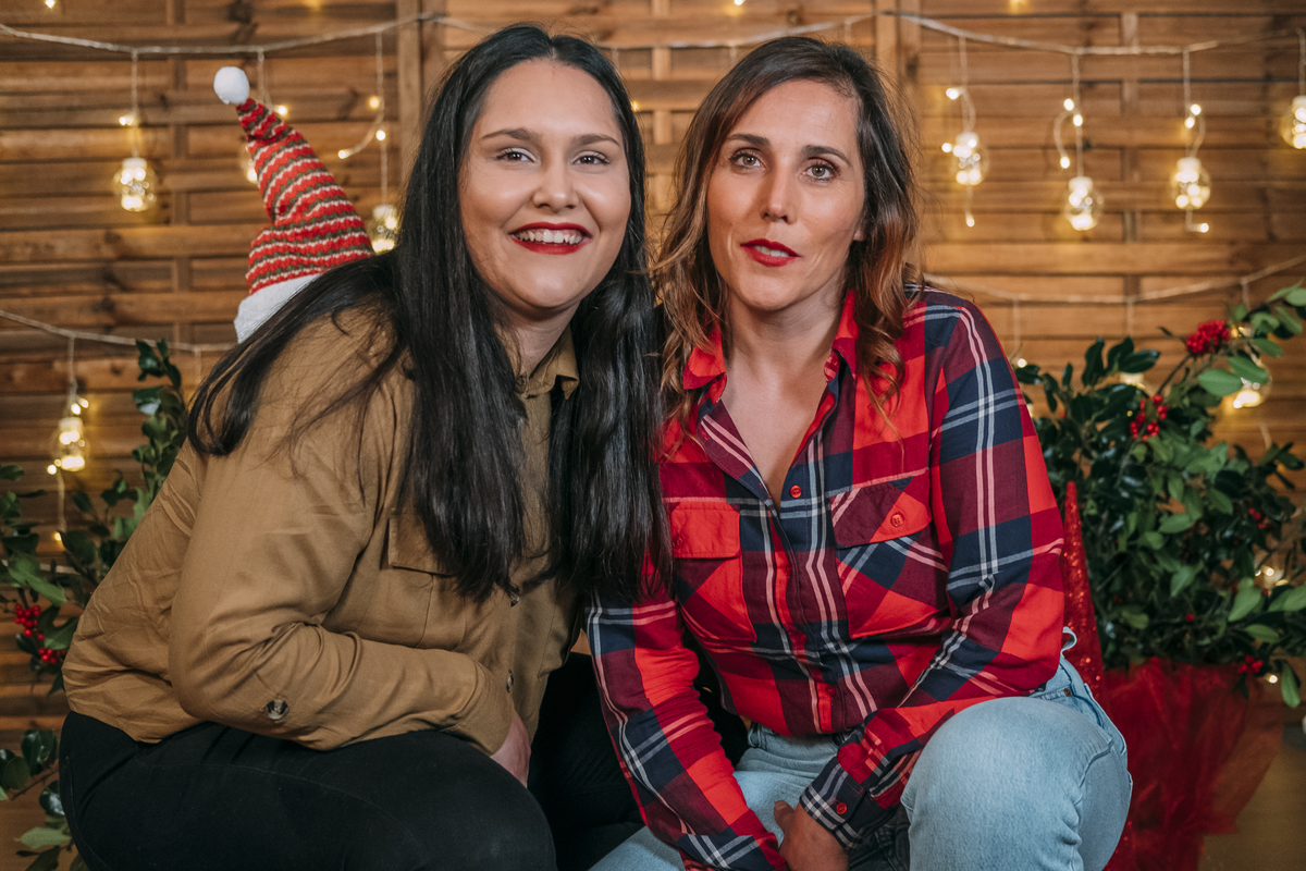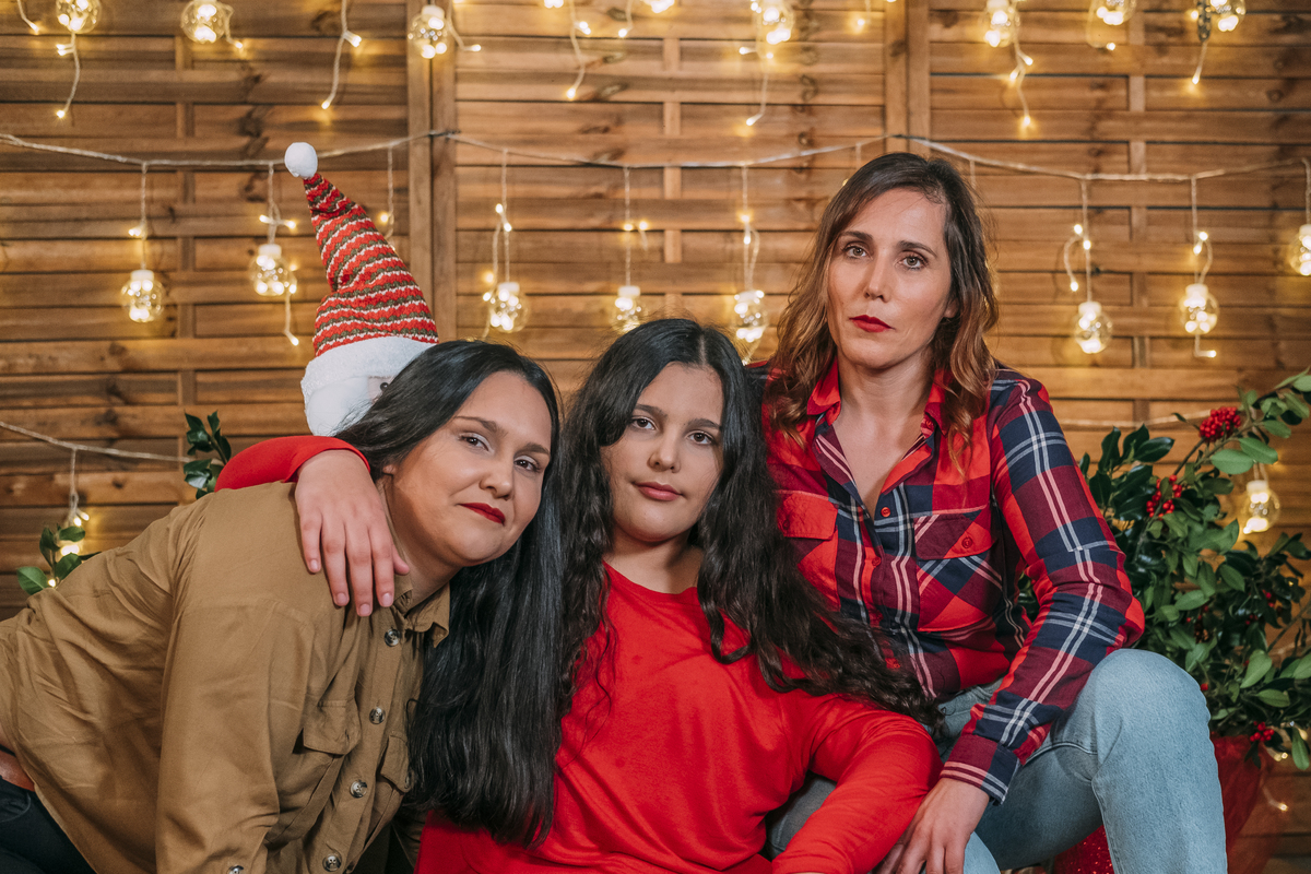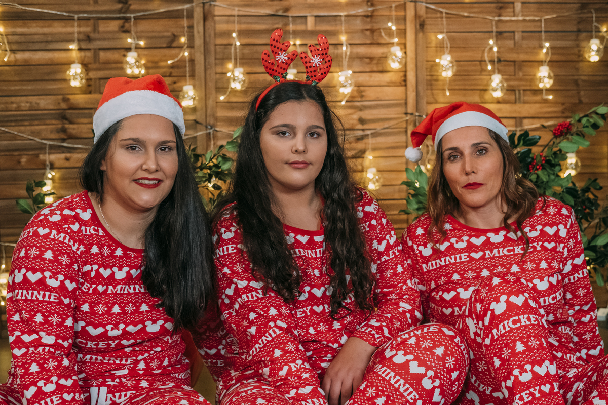 As mulheres lindas da família, a Mara, a mãe e a irmã, com o espírito natalício