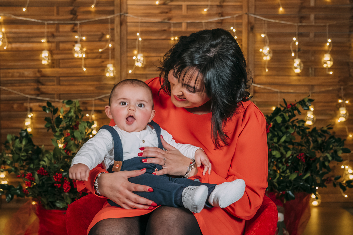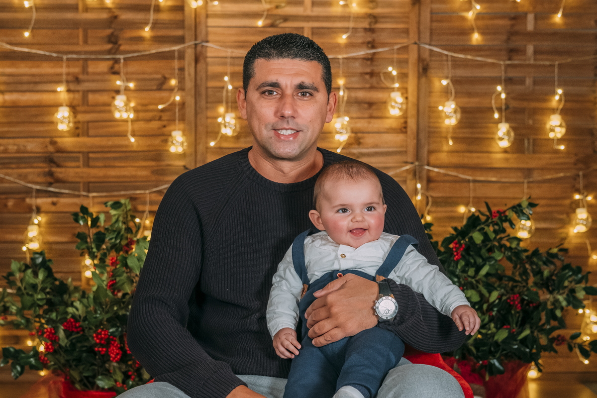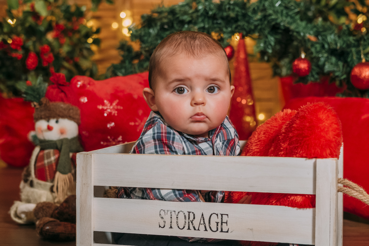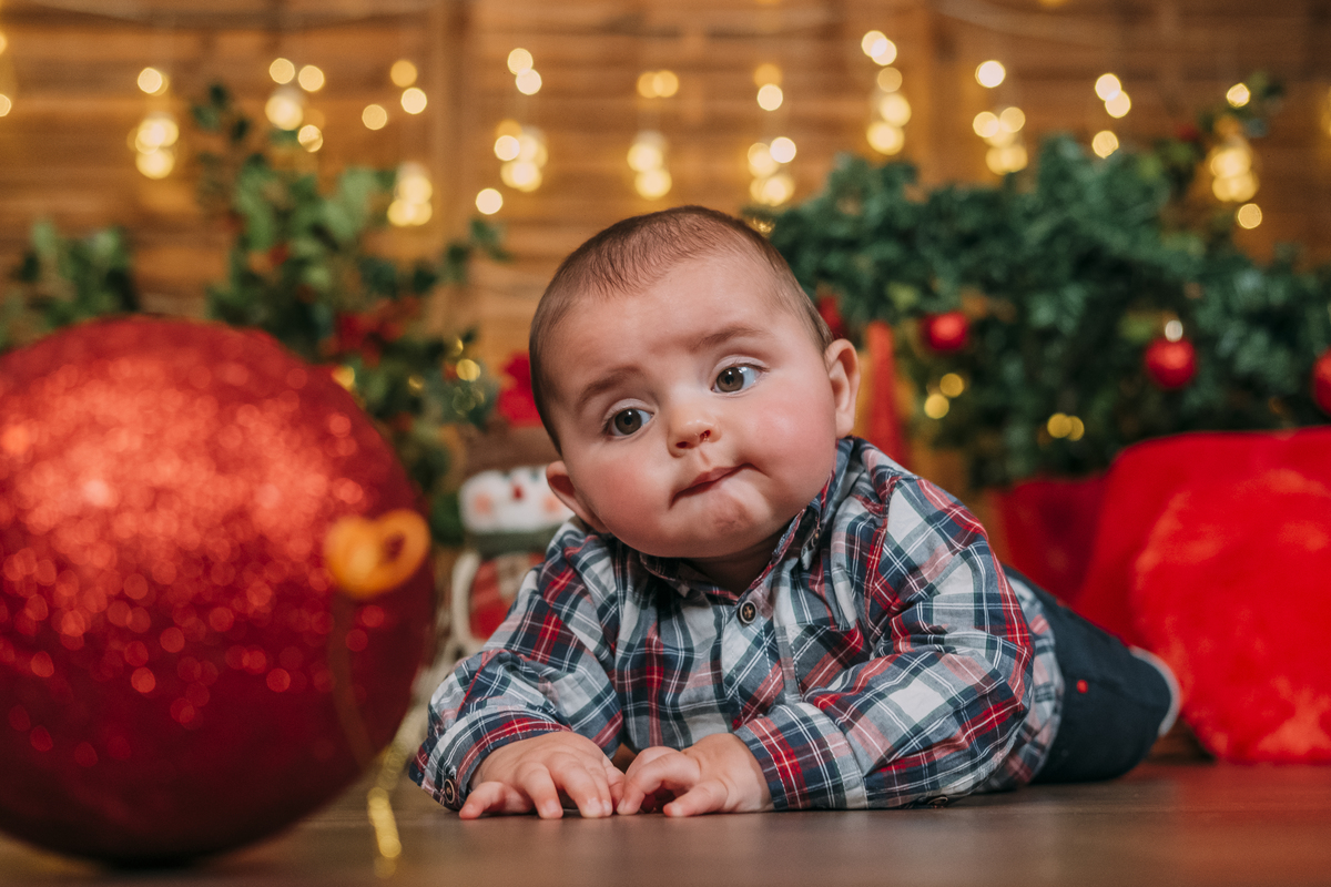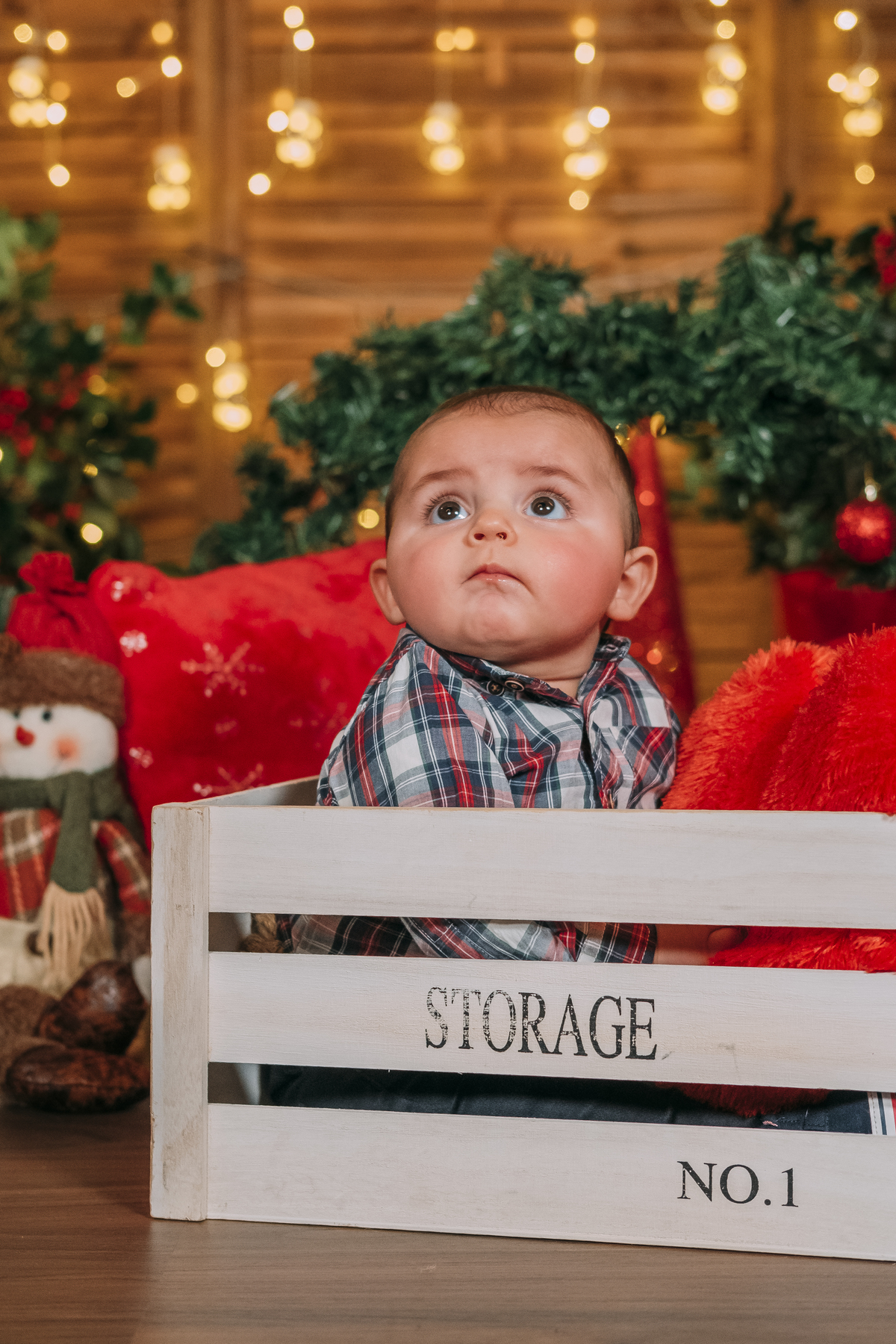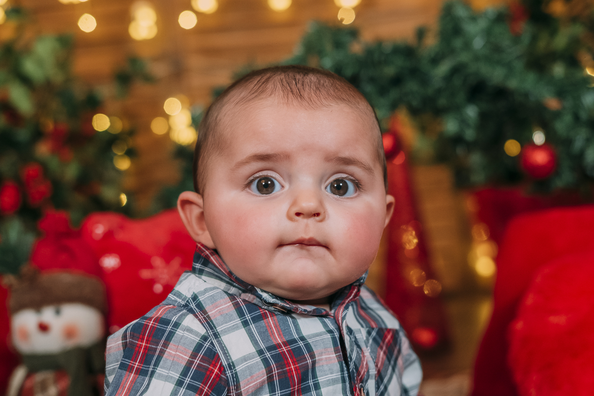 O pequeno Diogo na sessão fotográfica com a alegria do Natal.