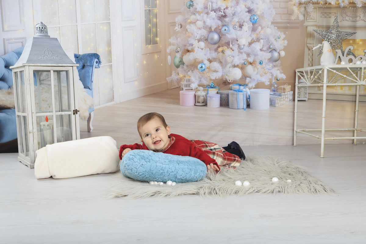 A pequena Iris na sessão fotográfica com a alegria e o amor natalício.