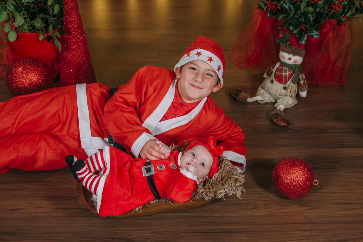 Os lindos irmãos Diogo e Carolina na sessão de Natal.