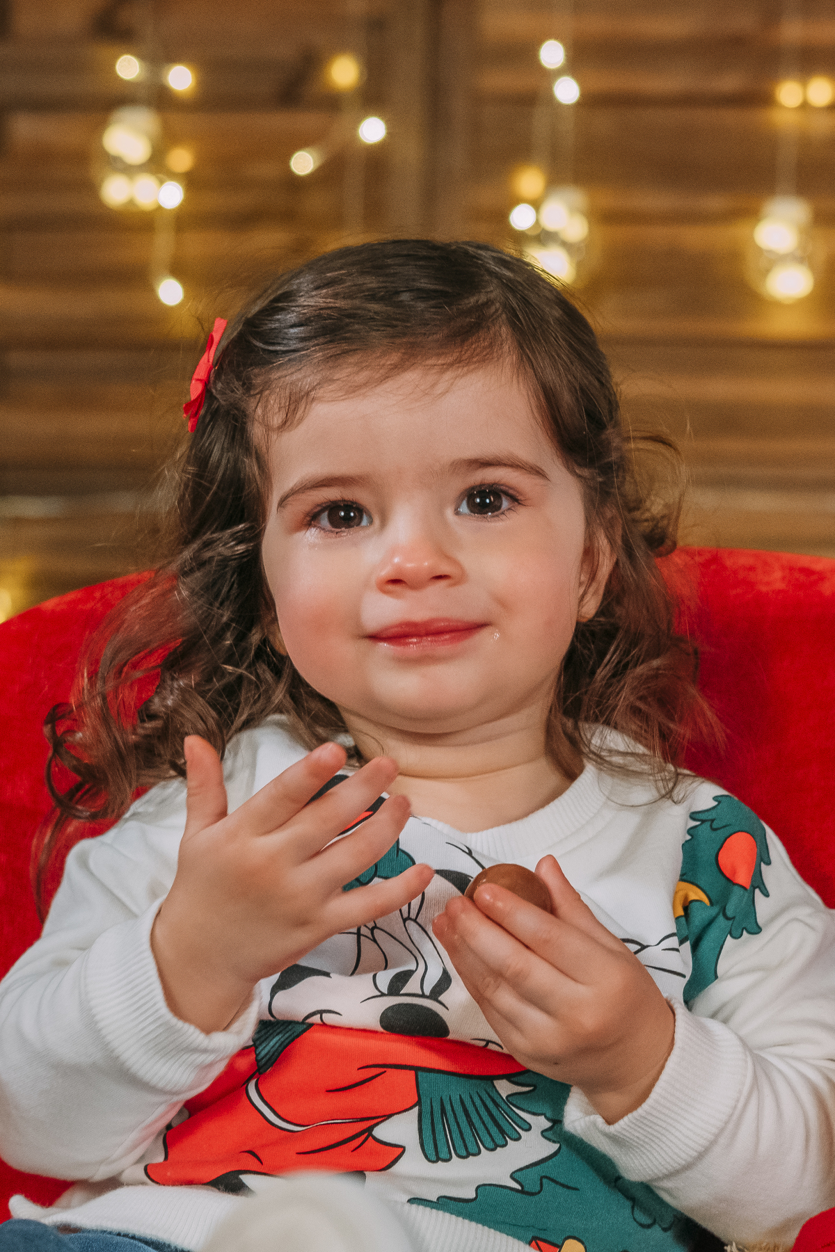 A pequena Maria Eduarda na sessão fotográfica de Natal.