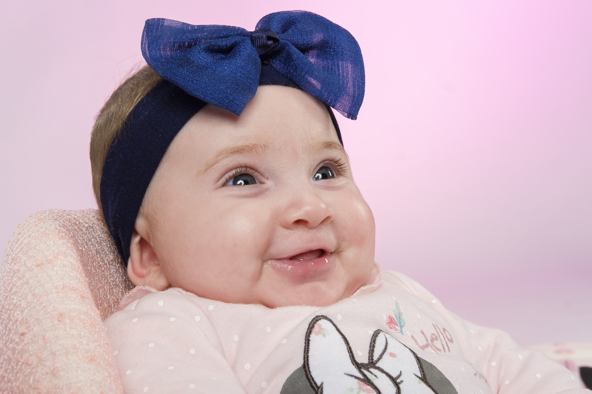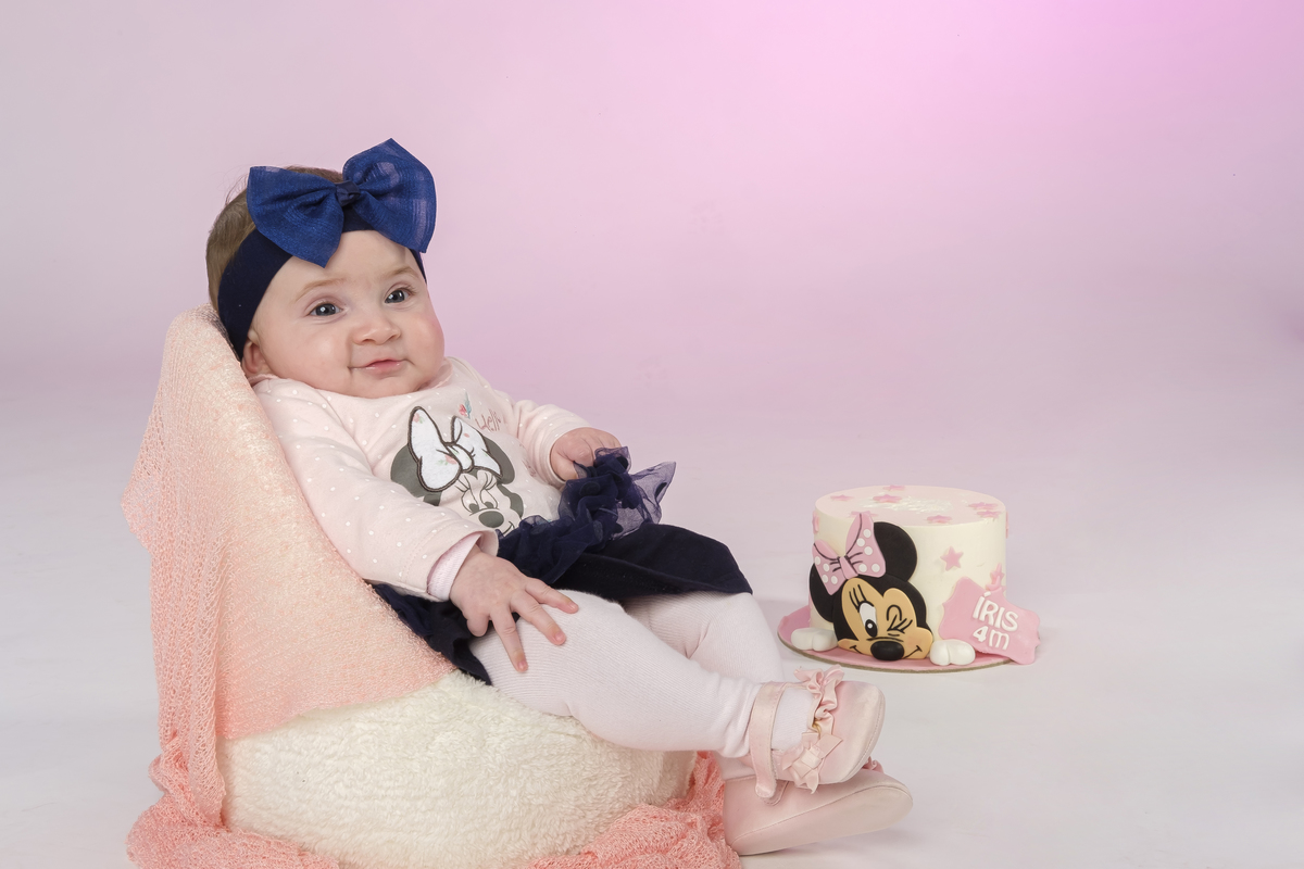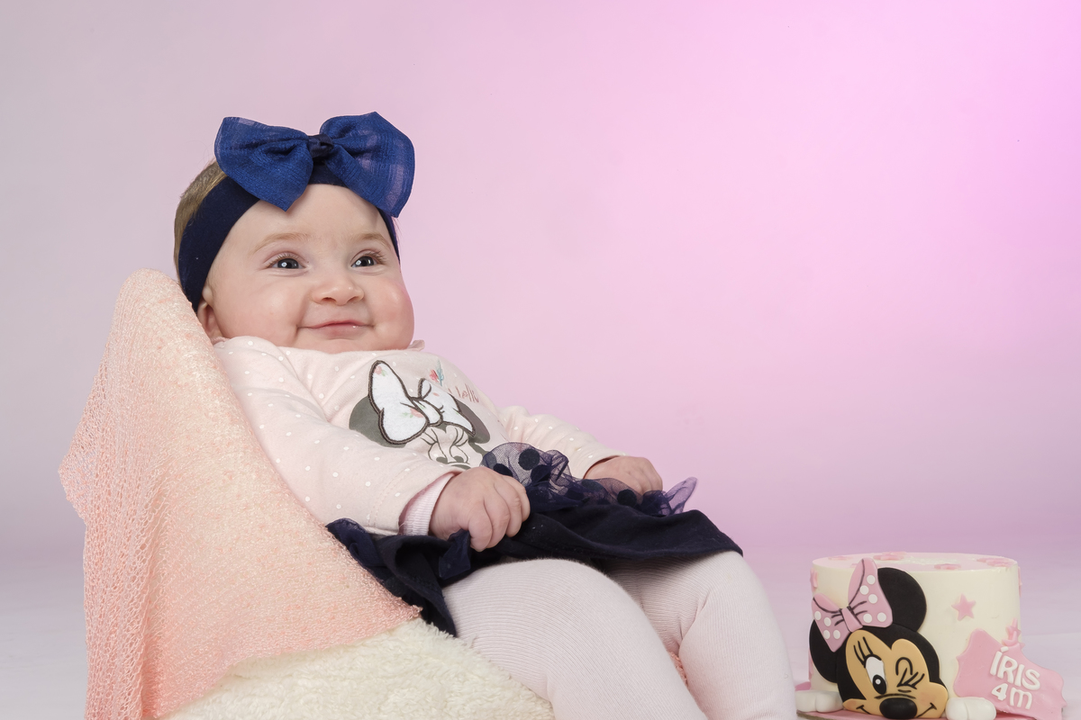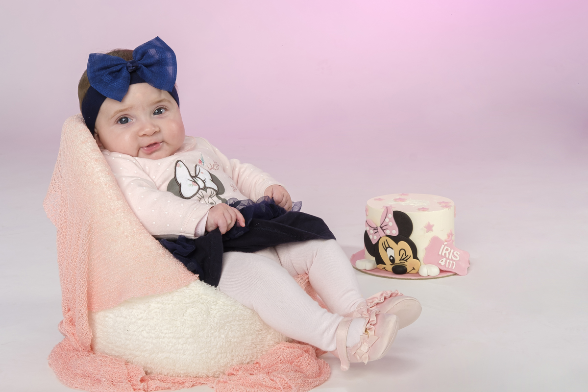 Pequena e bela Íris, com 4 meses, na sessão de estúdio.