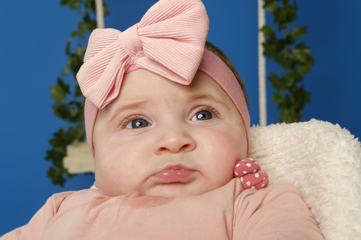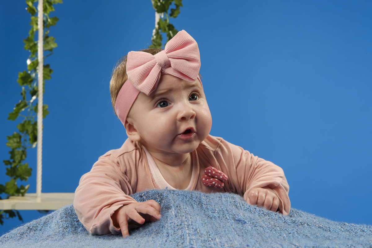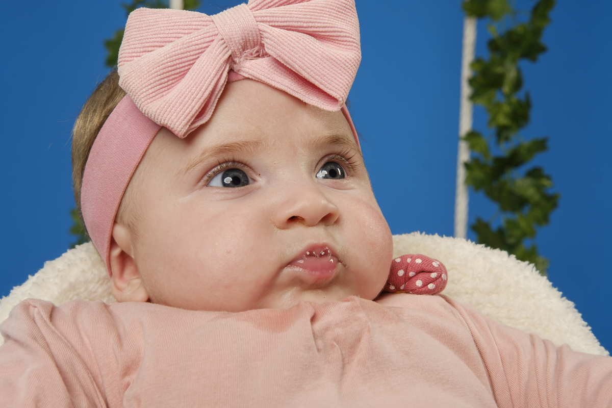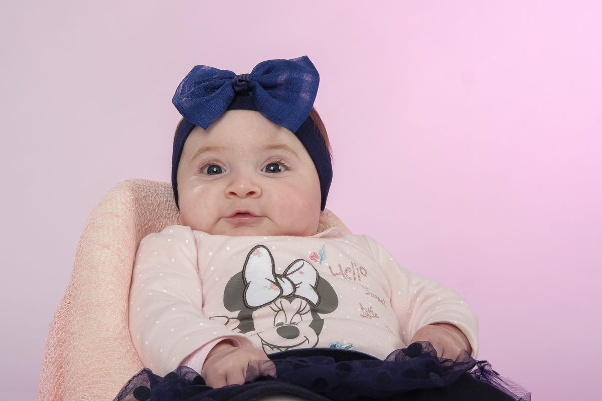 Pequena e bela Íris, com 4 meses, na sessão de estúdio.