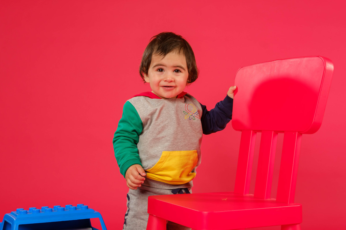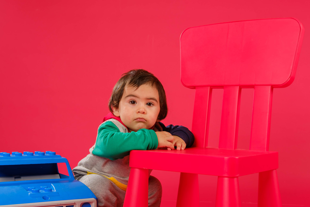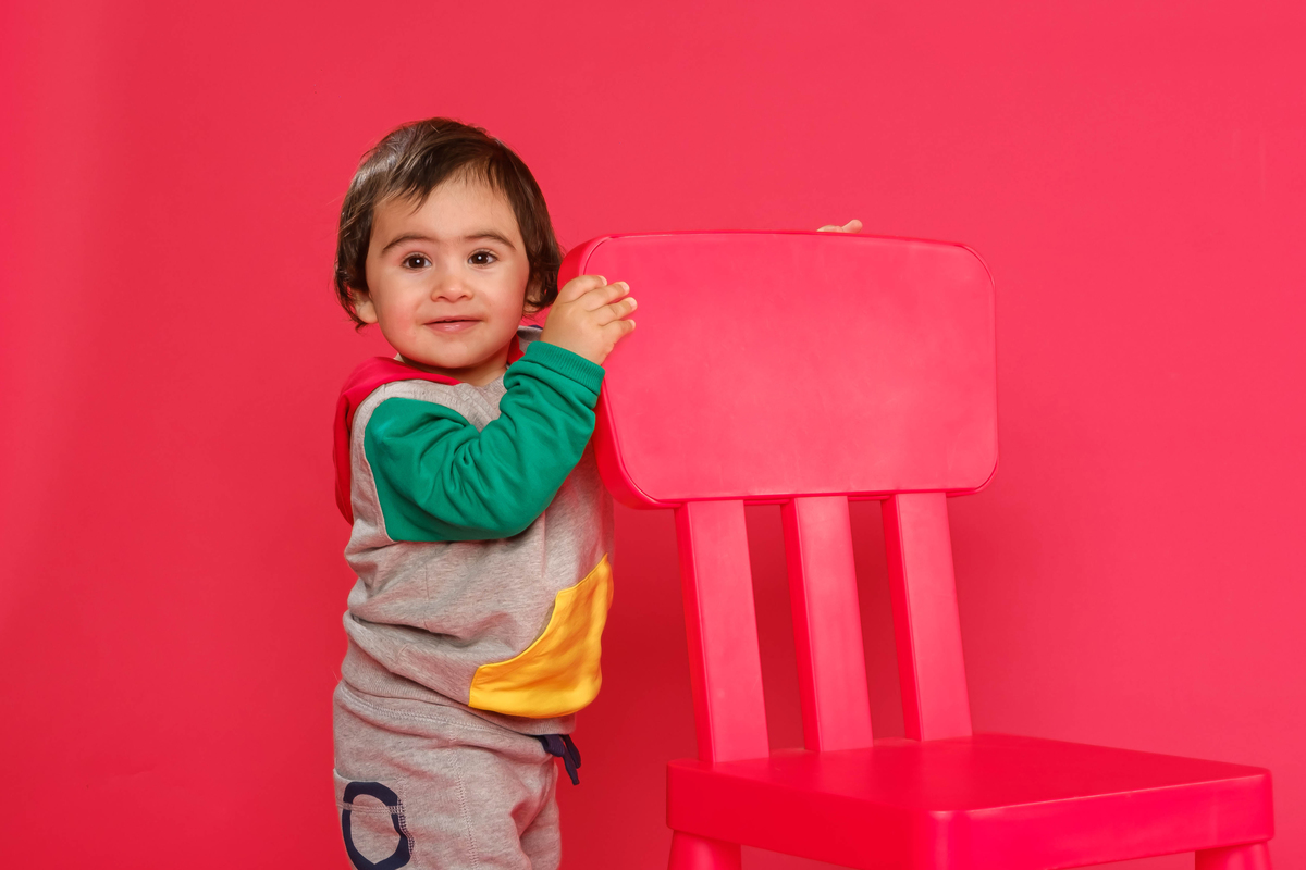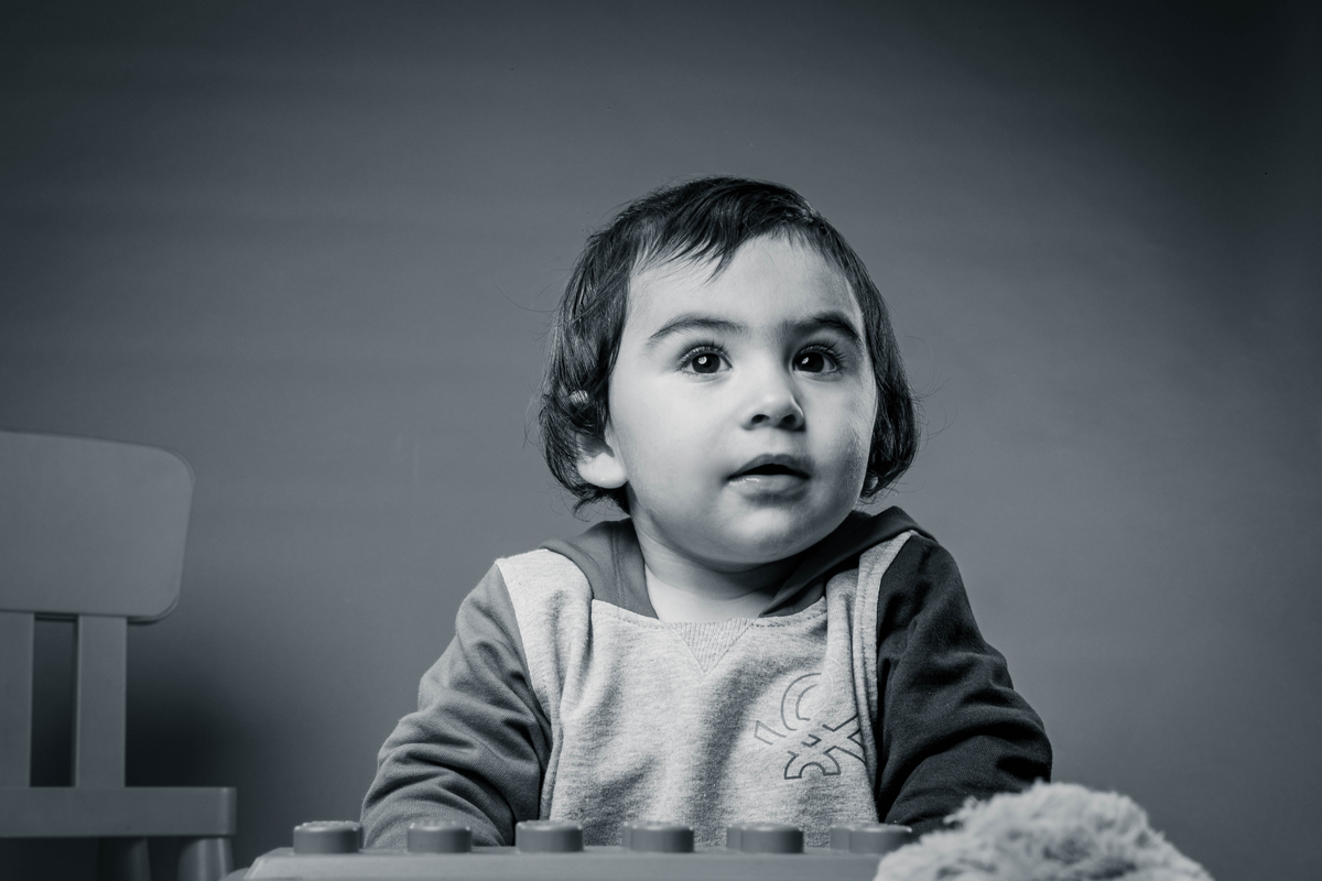 Pequeno Gustavo na sessão fotográfica de sorriso contagiante.