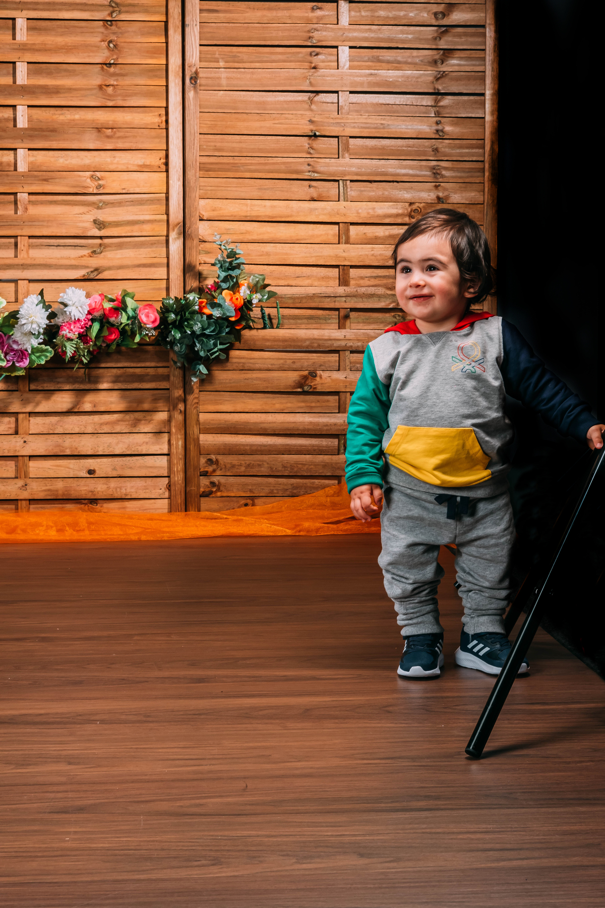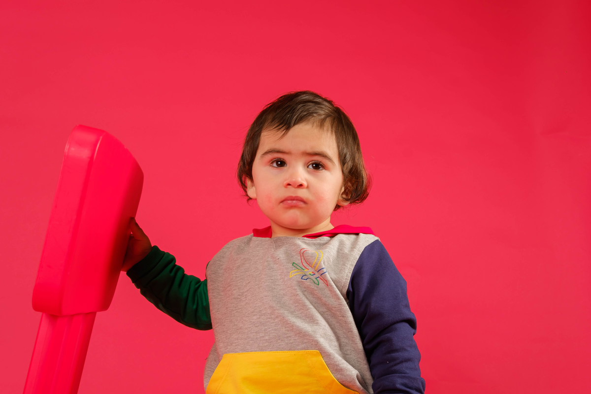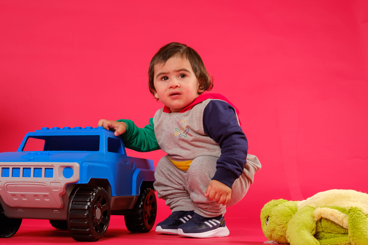 Pequeno Gustavo na sessão fotográfica de sorriso contagiante.