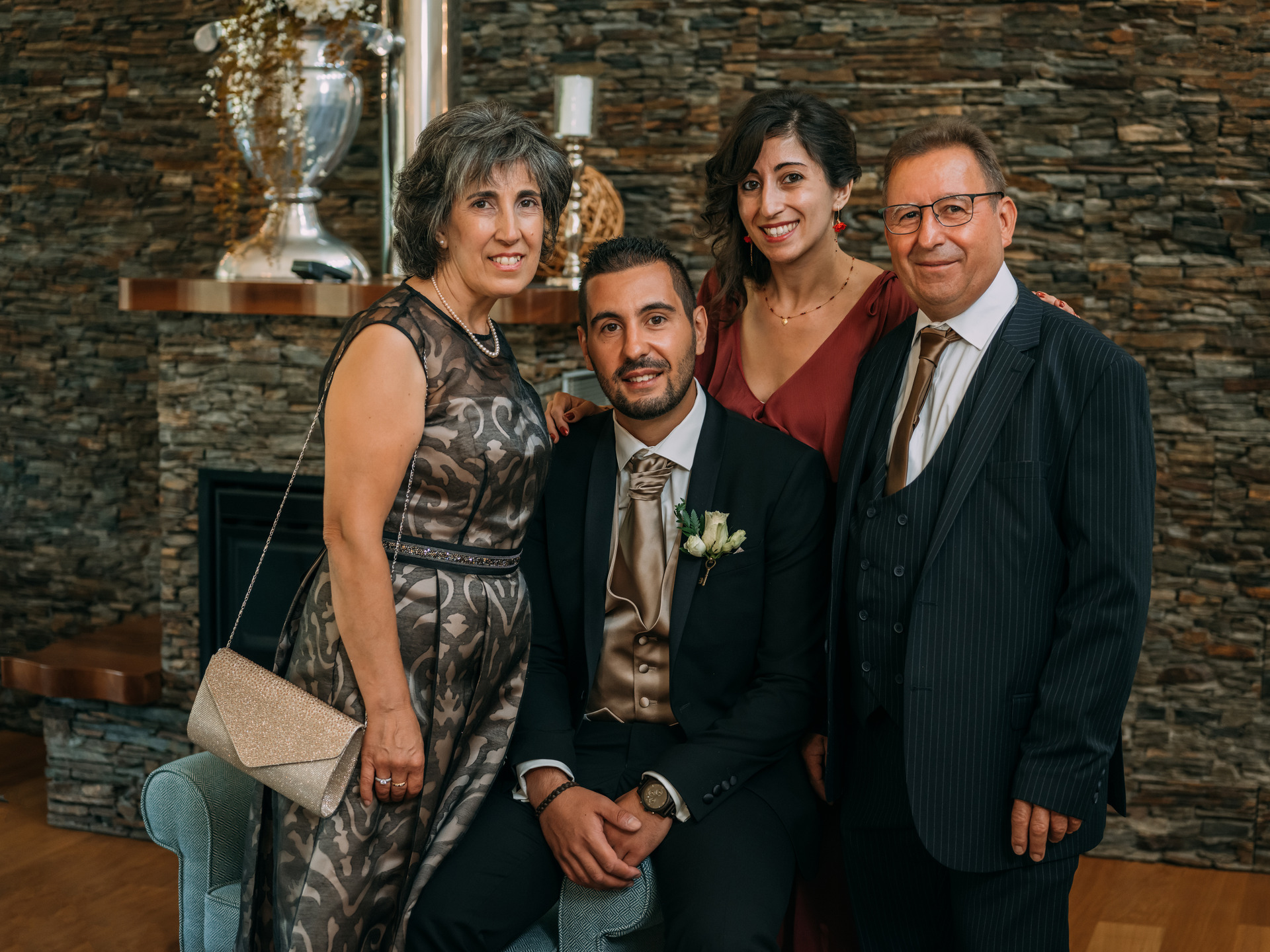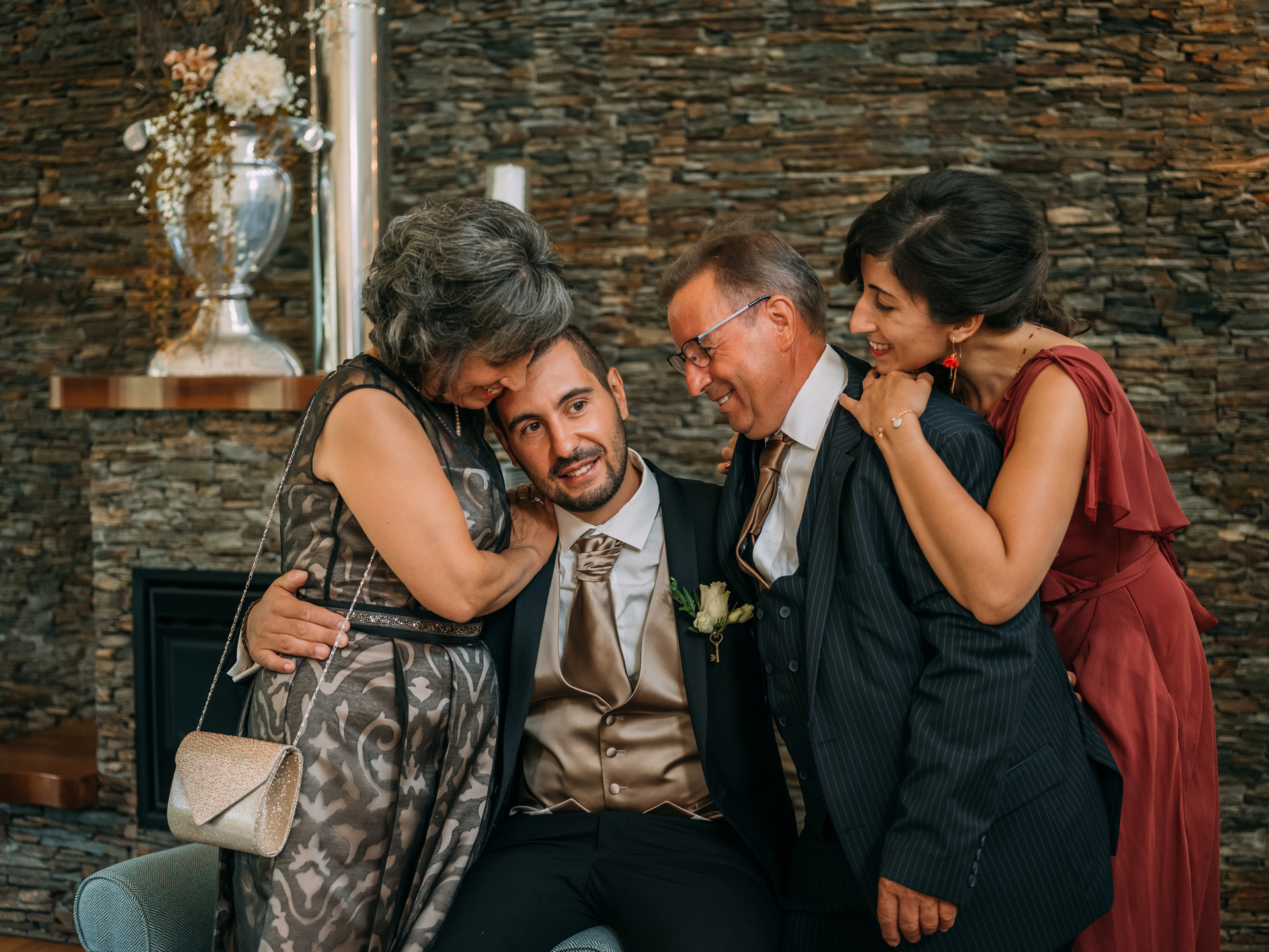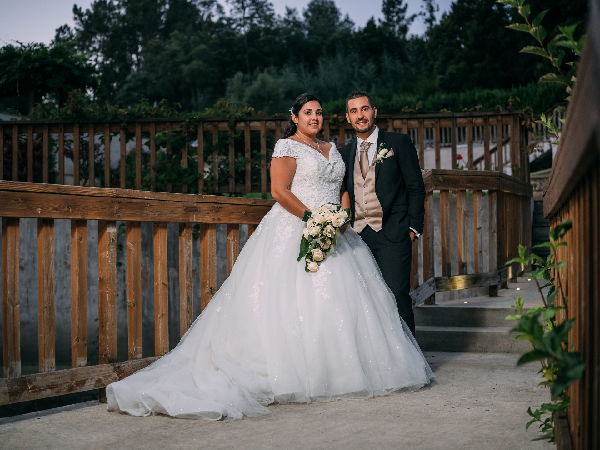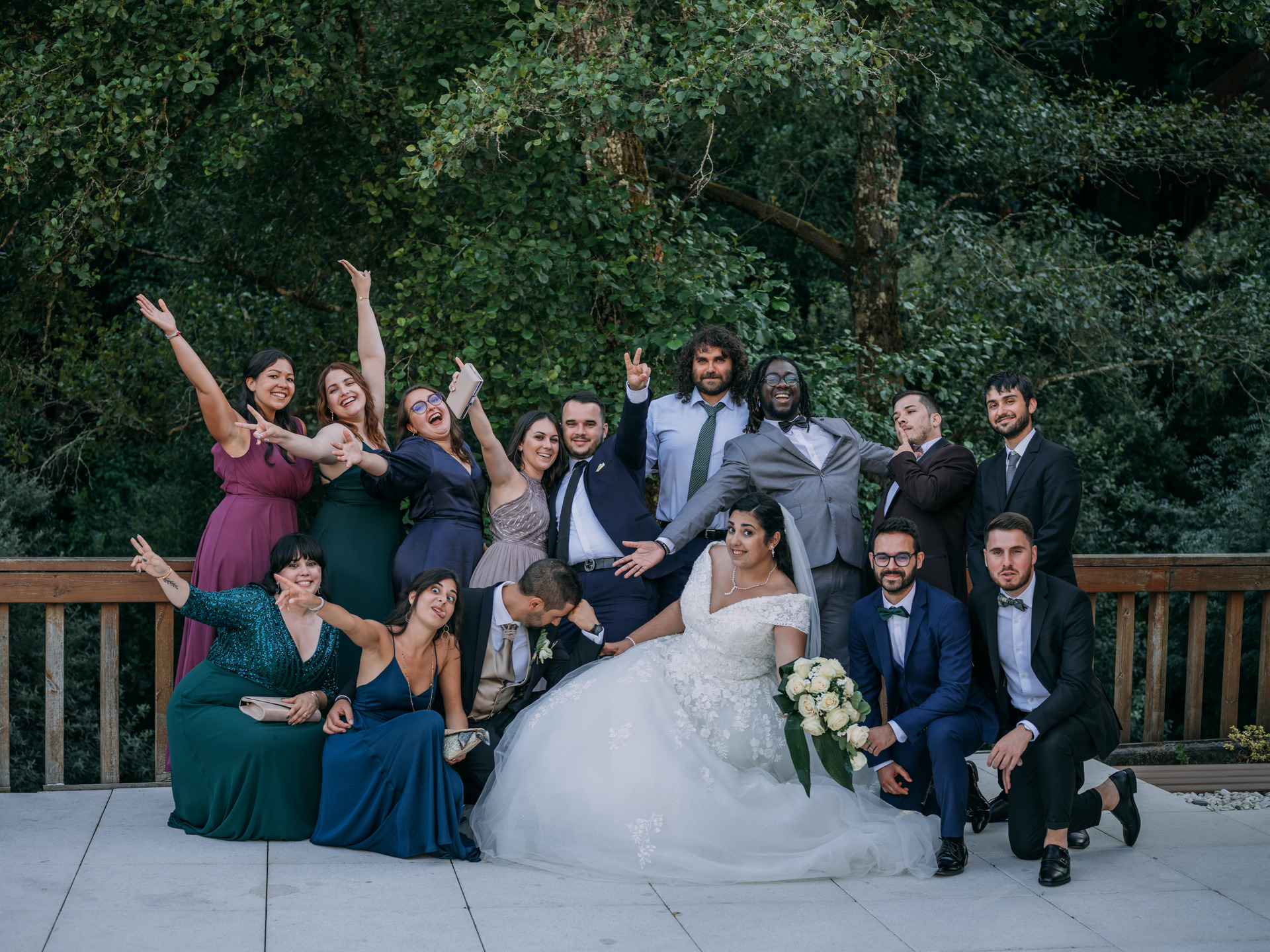 Noivos que celebram um dia mágico, repleto de amor com a família e amigos.