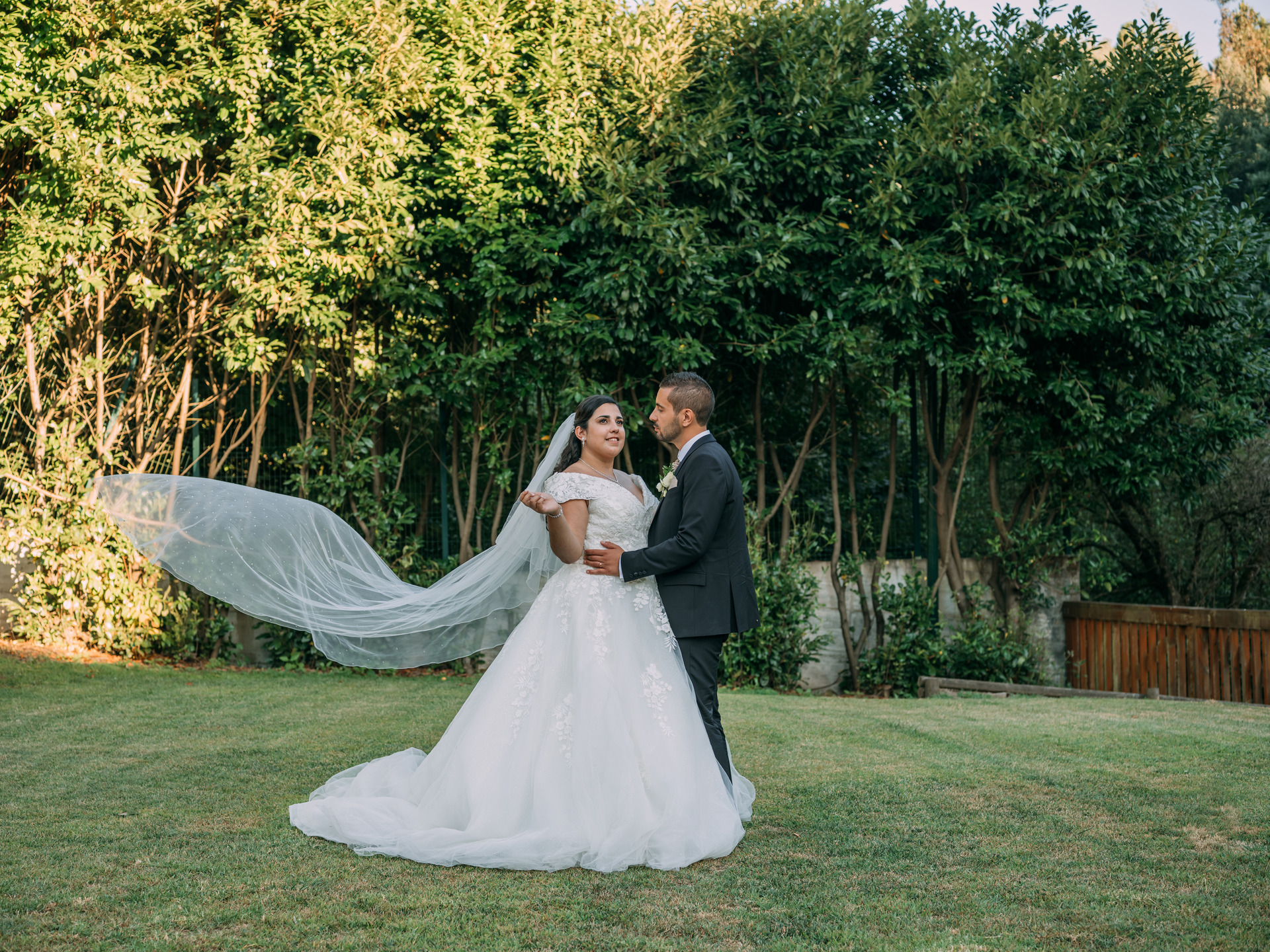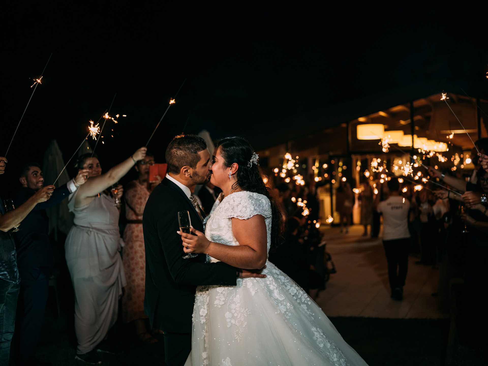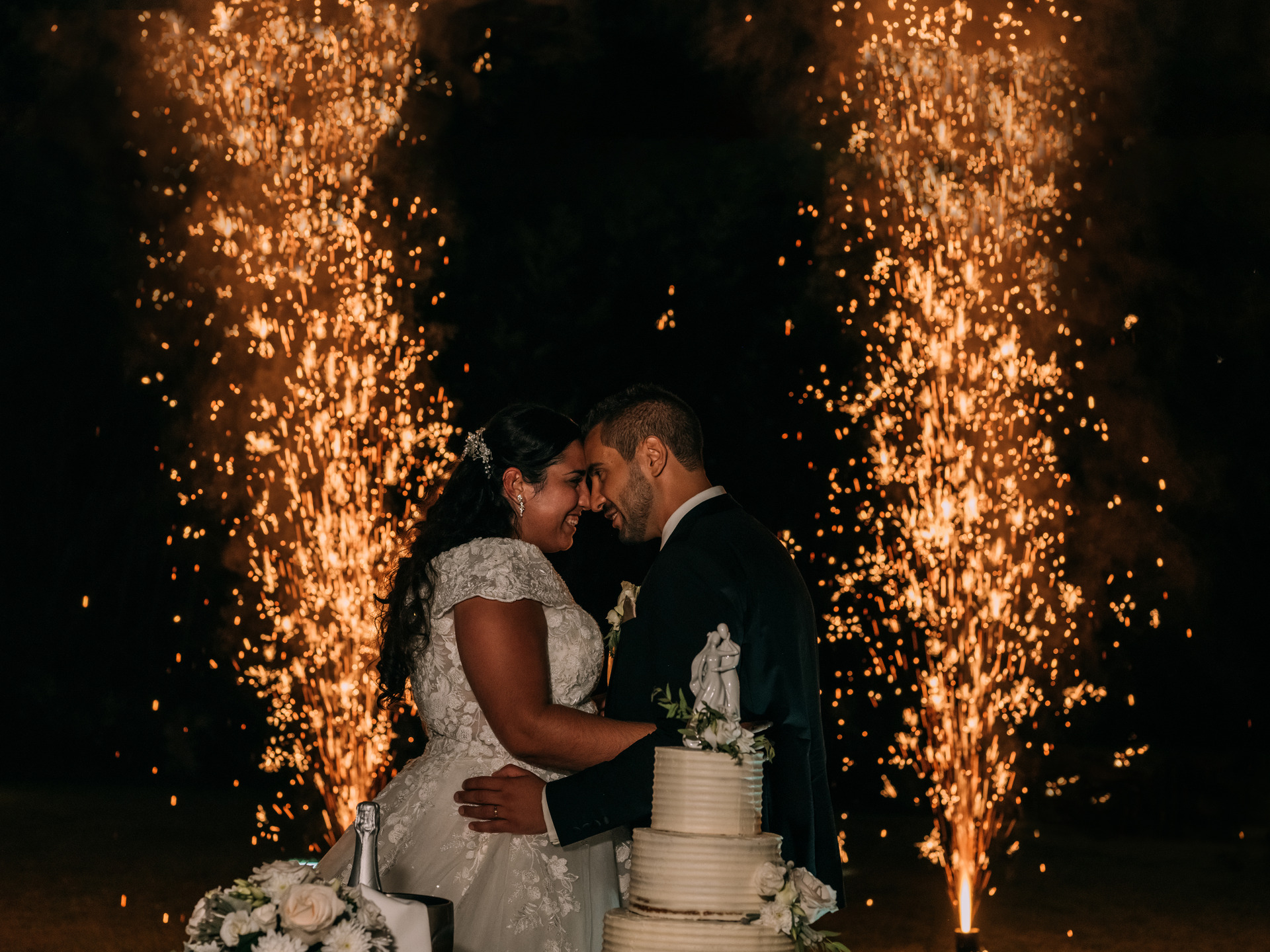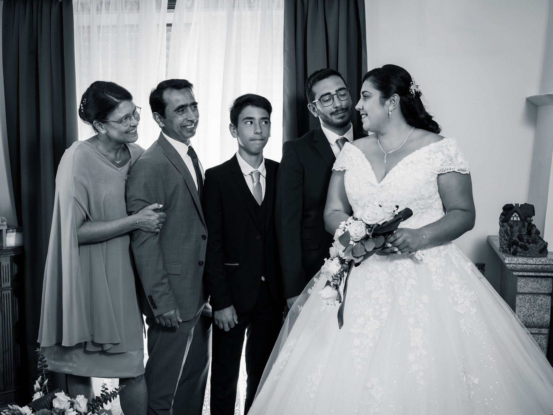 Noivos que celebram um dia mágico, repleto de amor com a família e amigos.