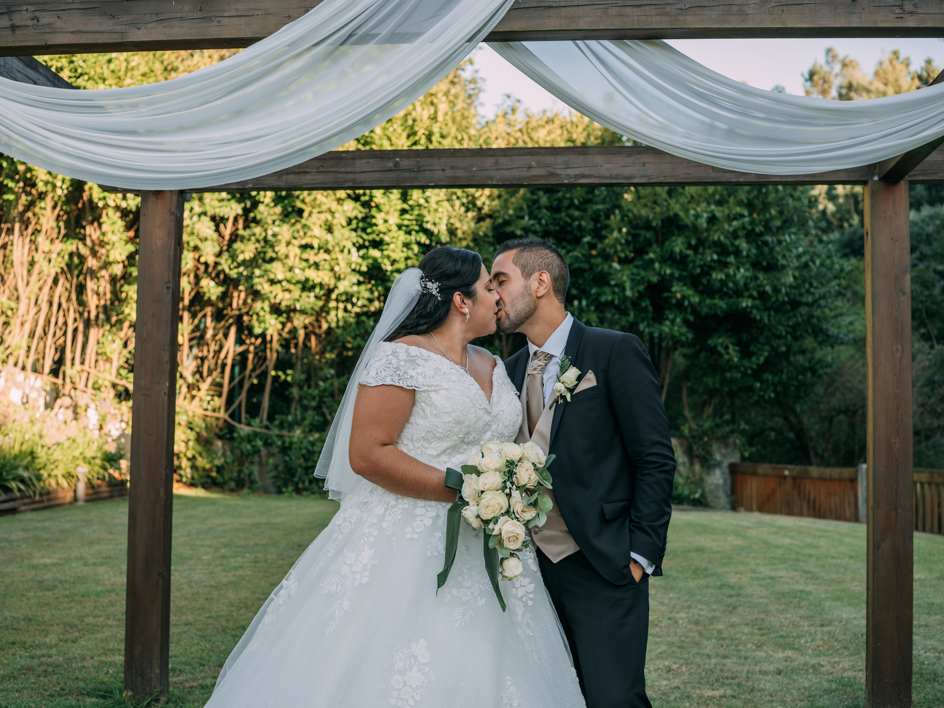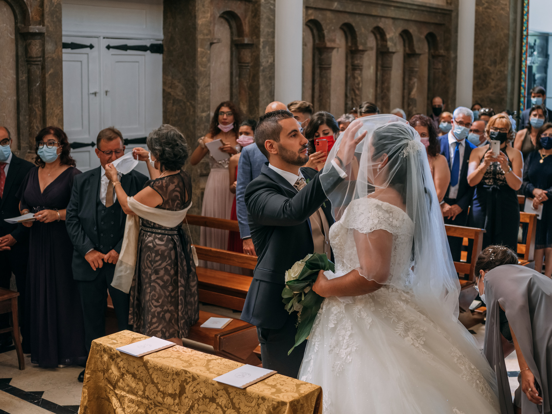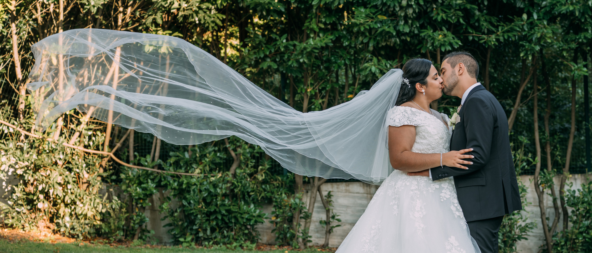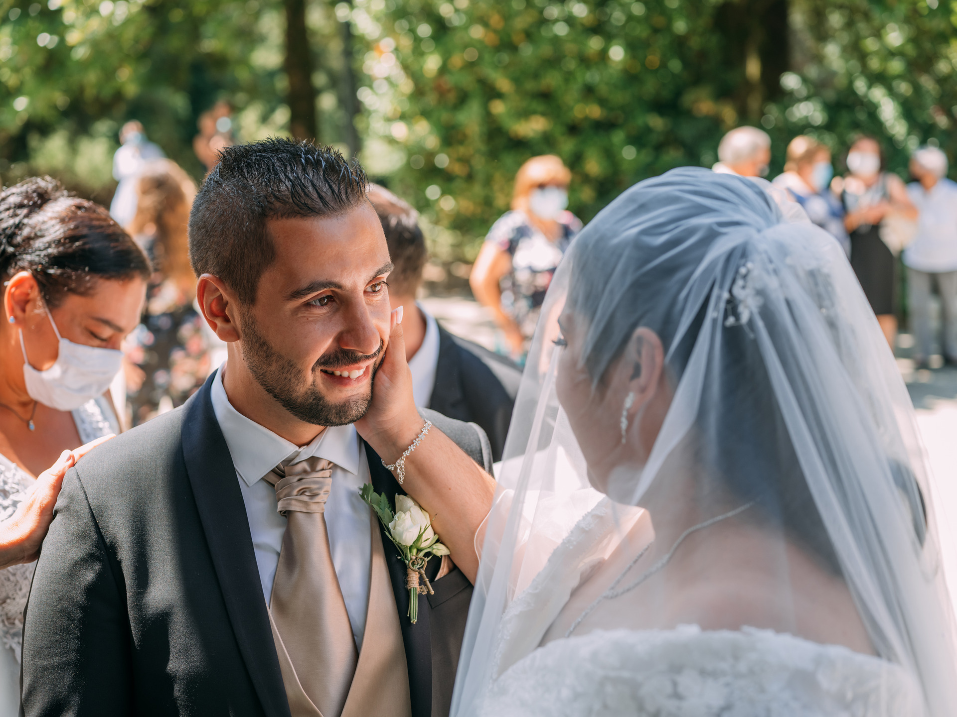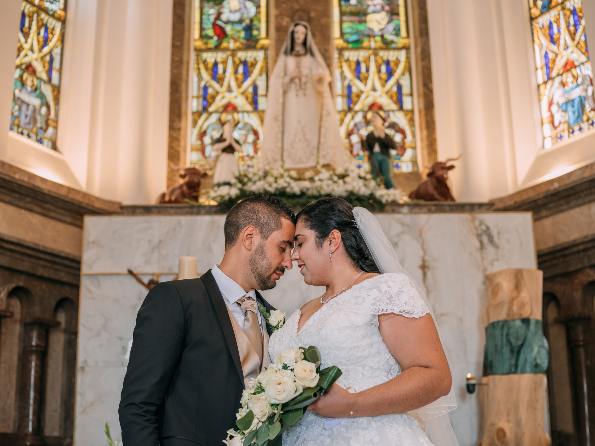 Noivos que celebram um dia mágico, repleto de amor com a família e amigos.