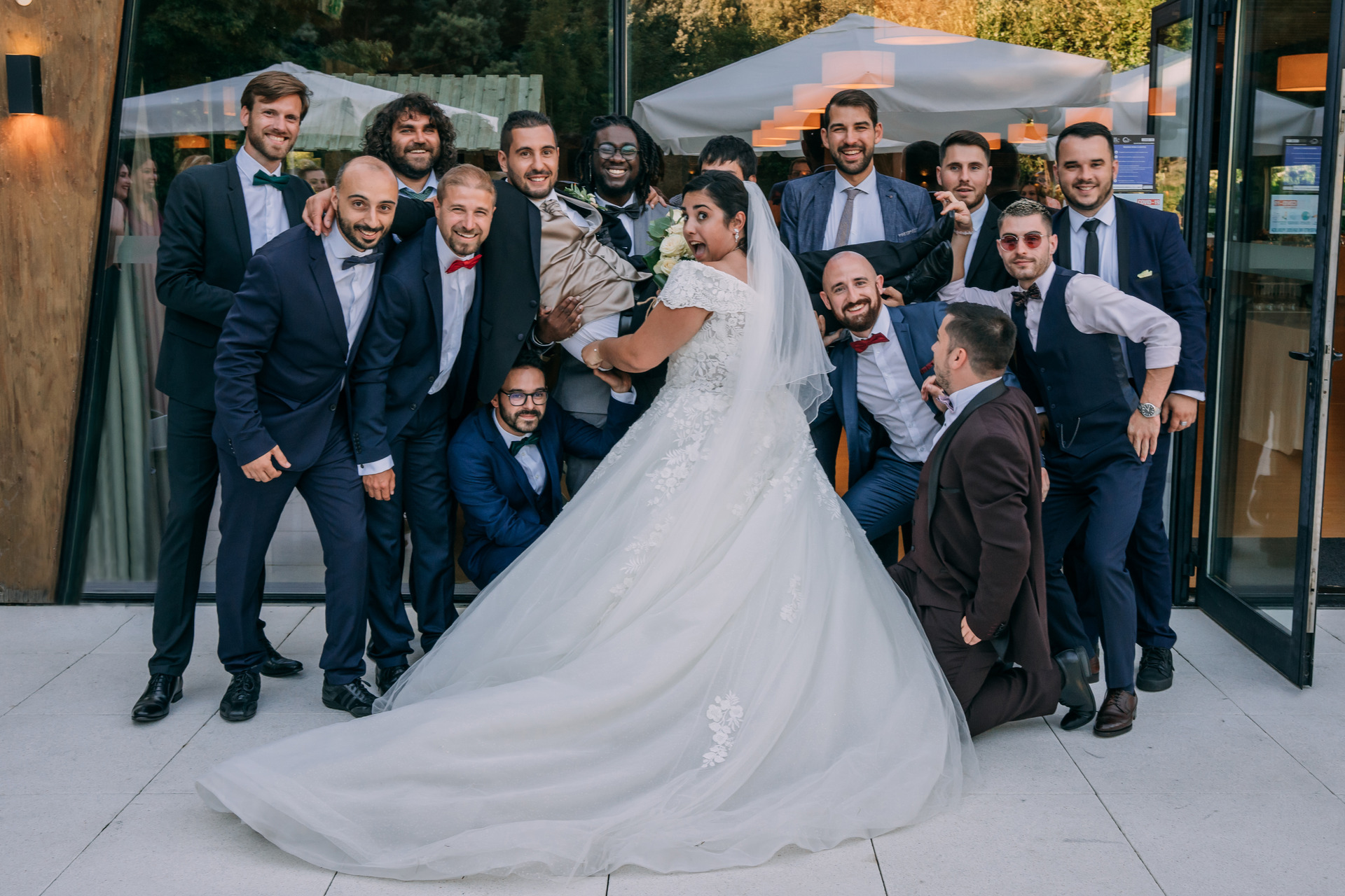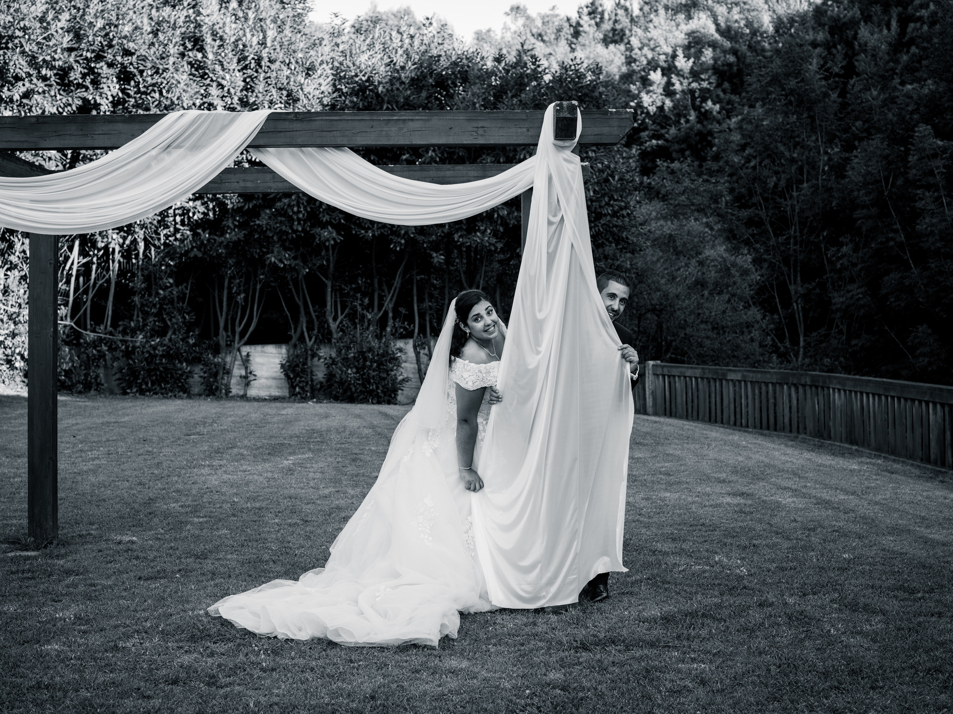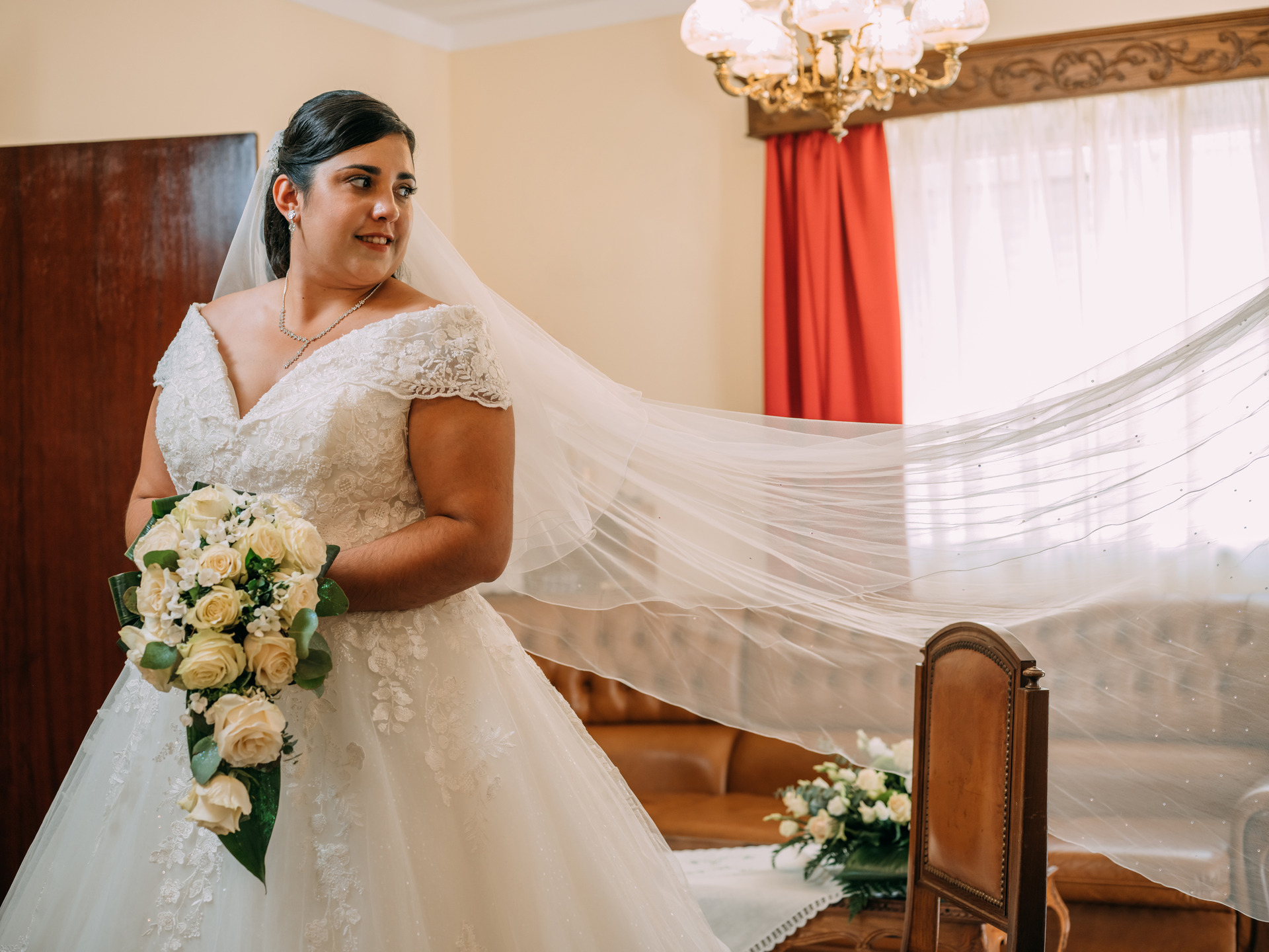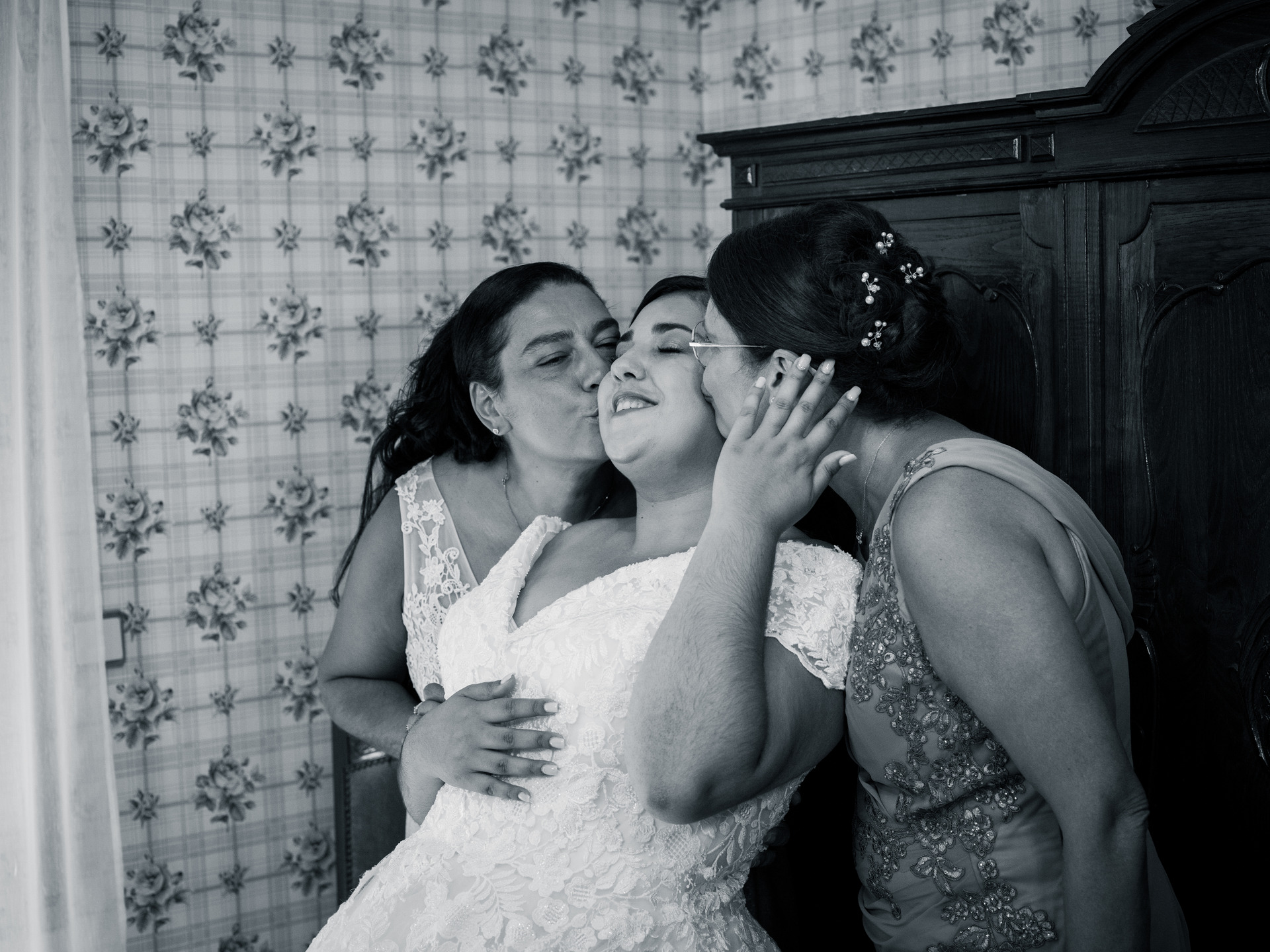 Noivos que celebram um dia mágico, repleto de amor com a família e amigos.