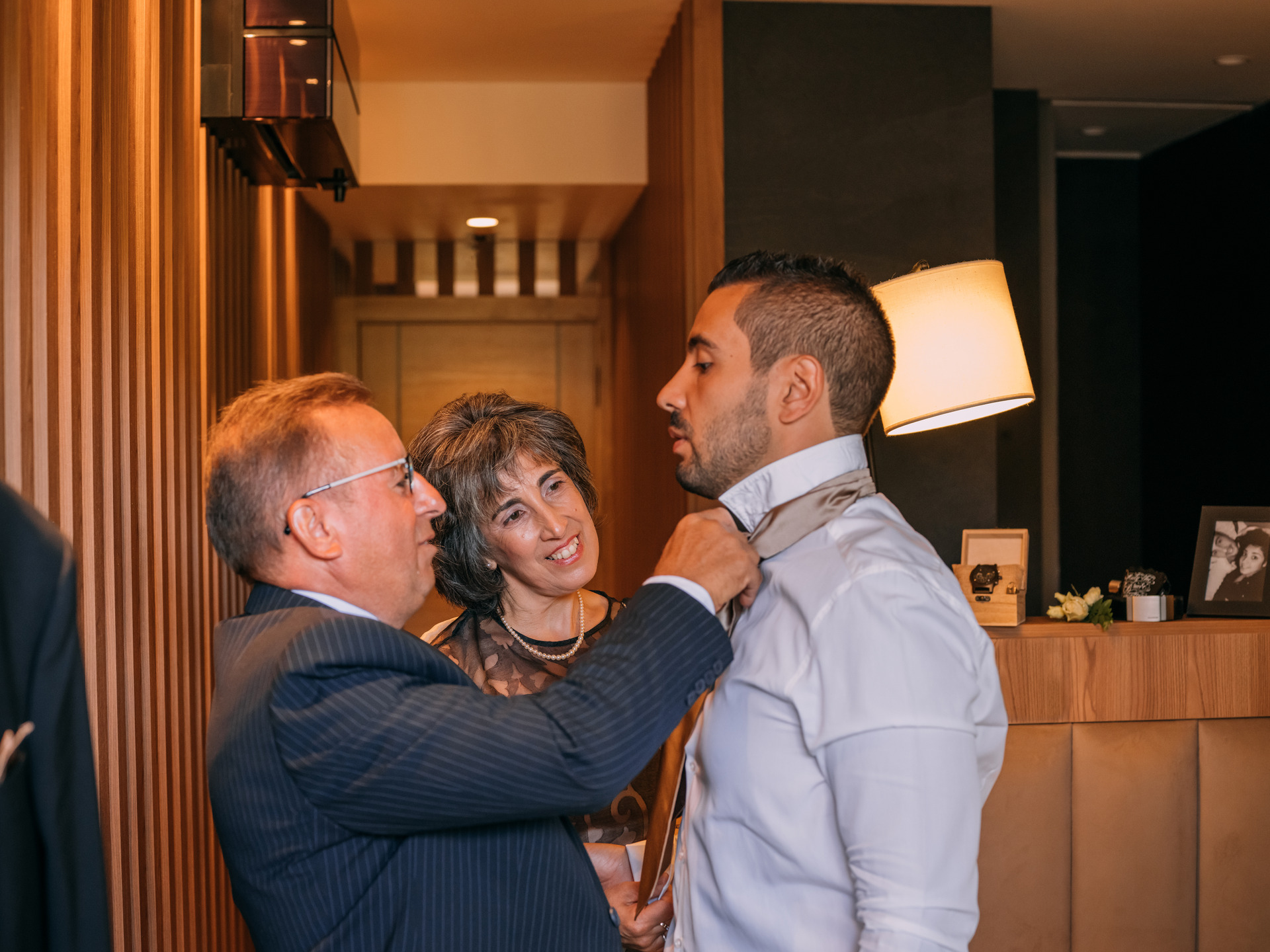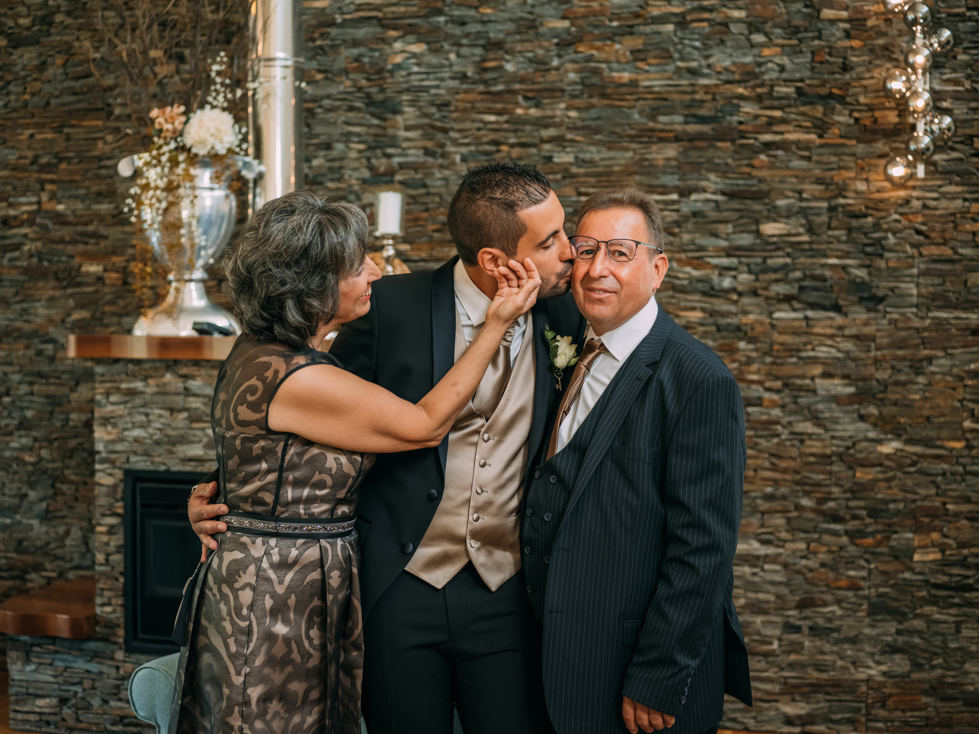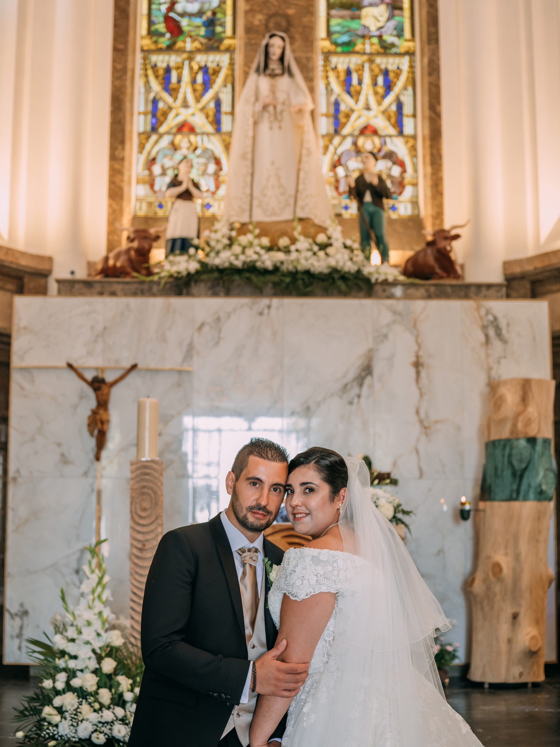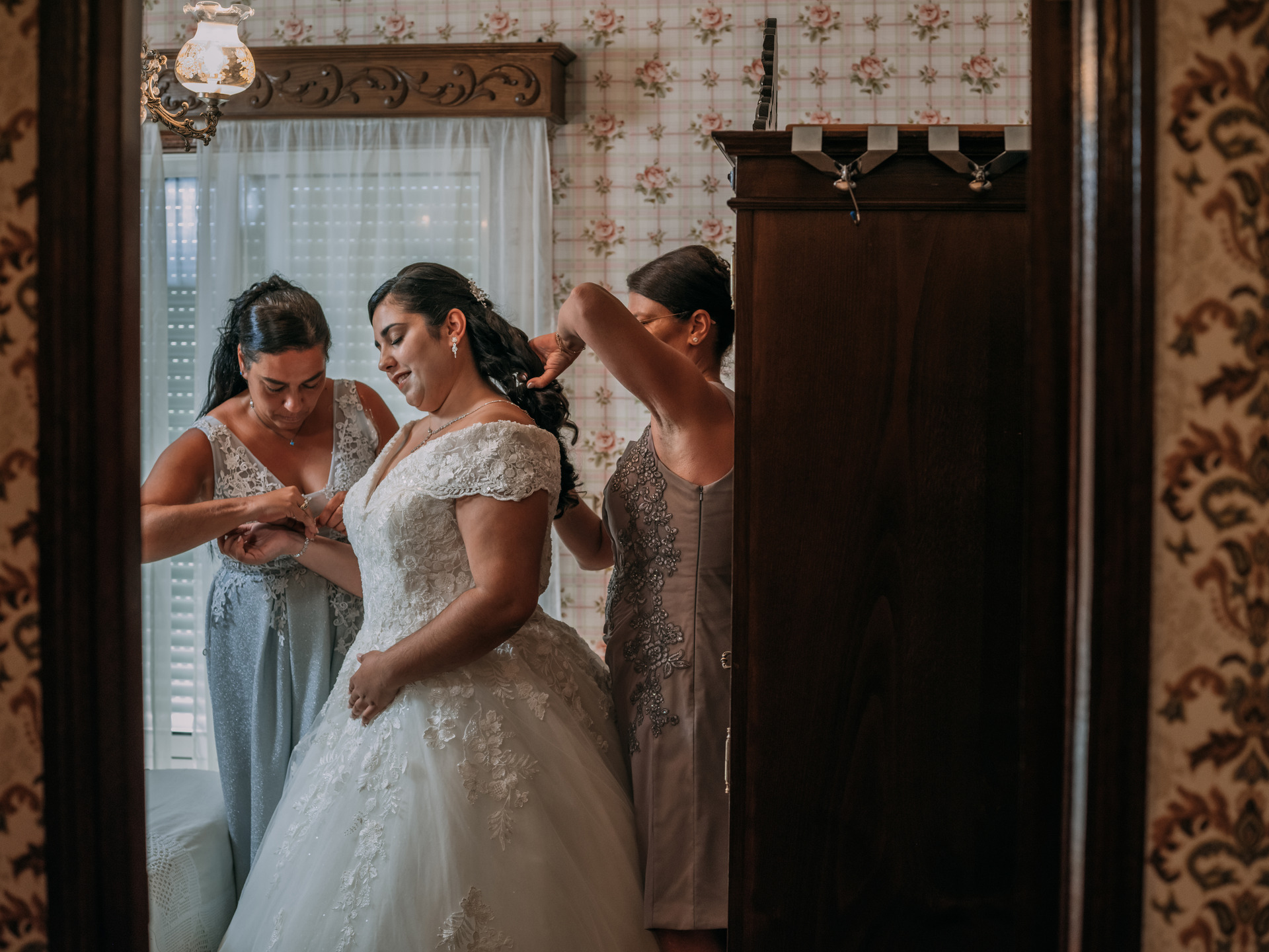 Noivos que celebram um dia mágico, repleto de amor com a família e amigos.